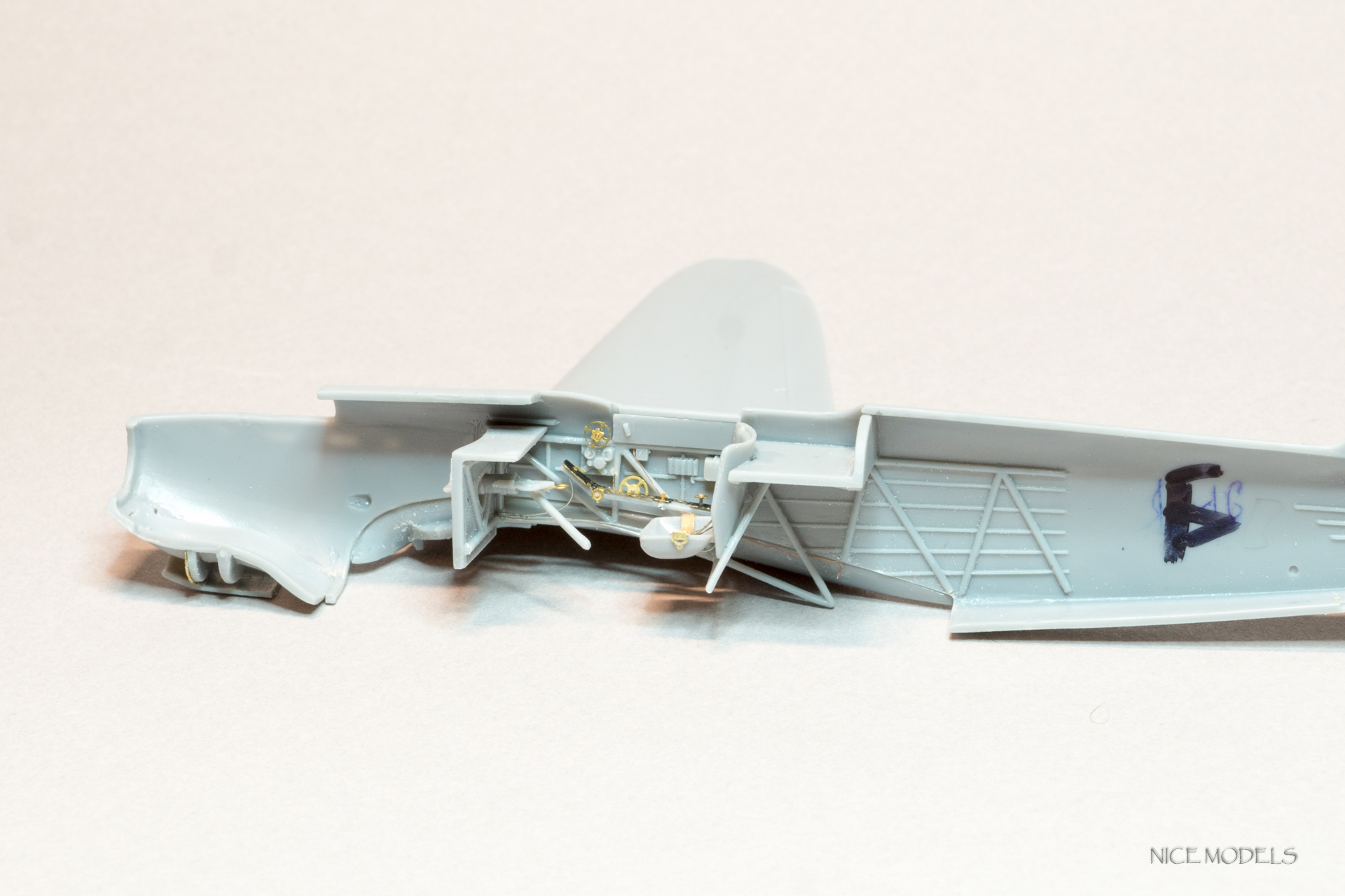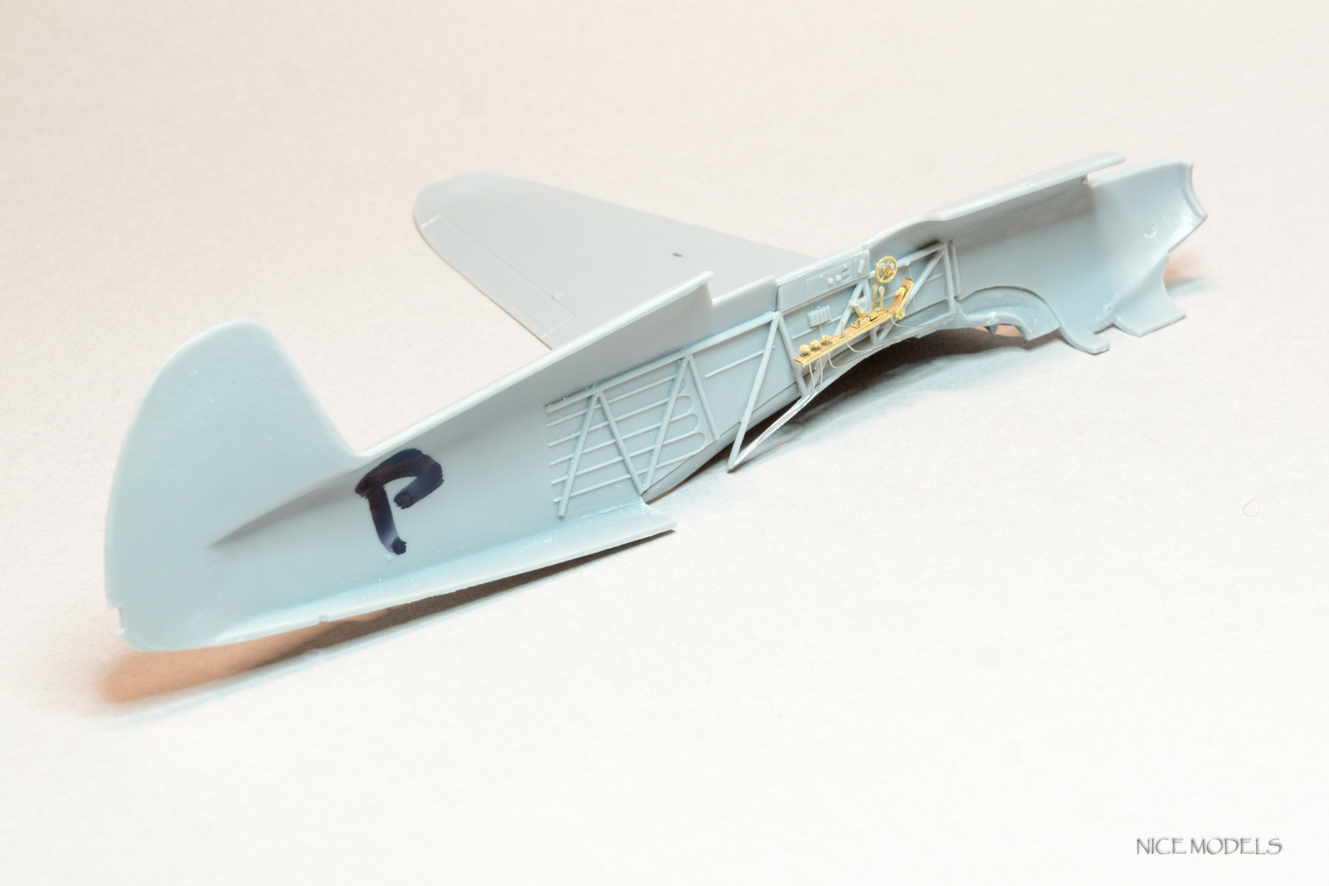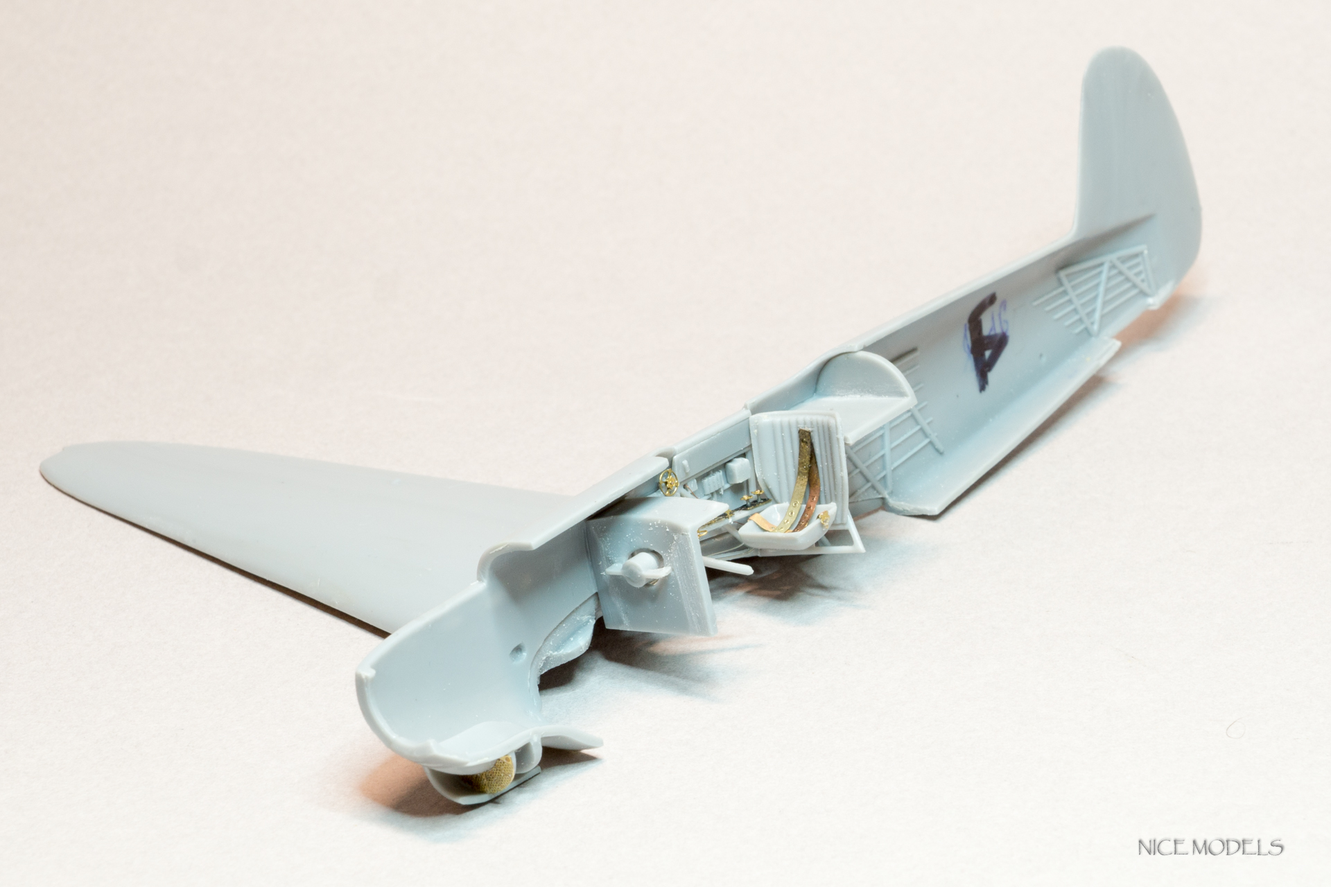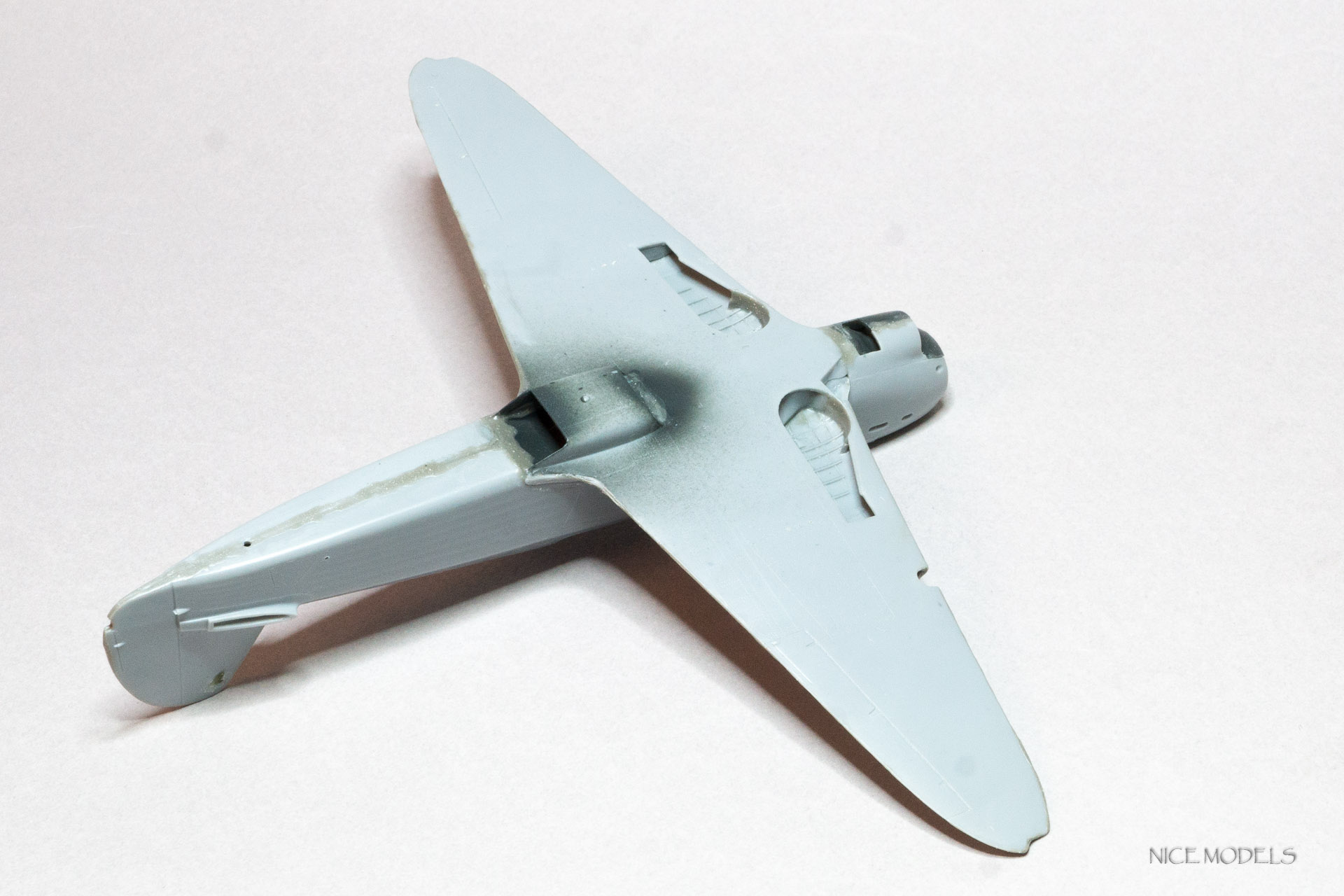 Продолжим. Поженил фюзеляж с крыльями... Много нецензурных слов... Из трех более менее сошелся только один. Все таки ЛНД есть ЛНД, к слову , такой же Як от Южного Фронта состыковался более приятно. Сделал остекление топливомеров из пленки. На данный момент швы залиты жидкой шпатлевкой от Aurora hobby. Так же уменшил толщину стабилизаторов.
