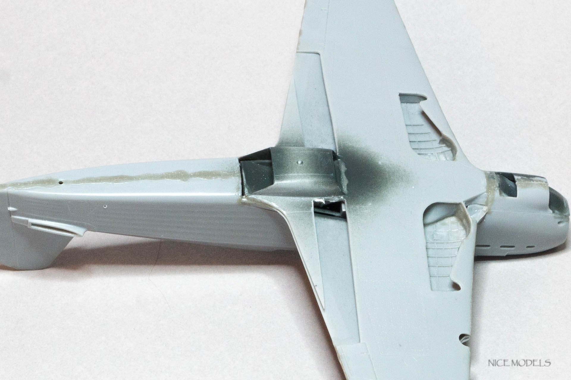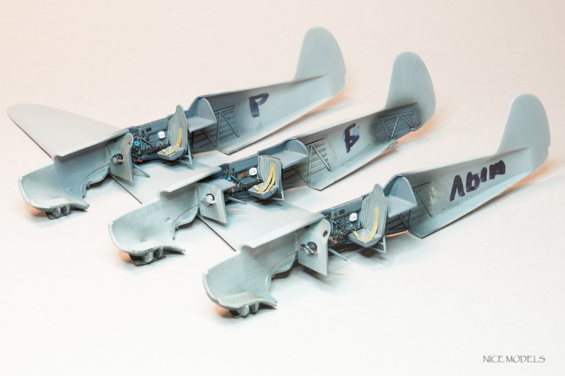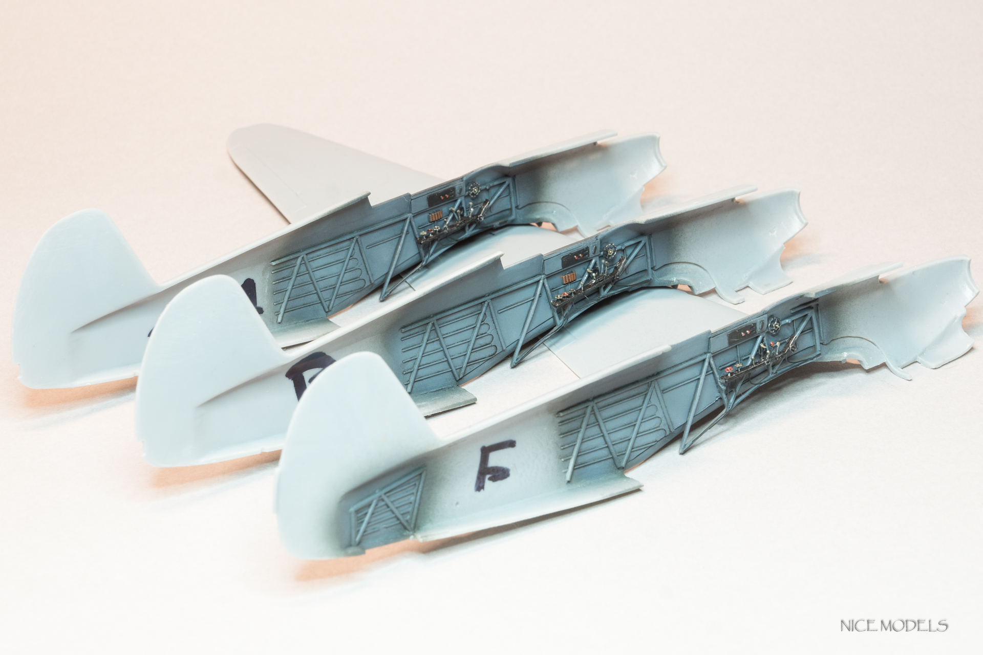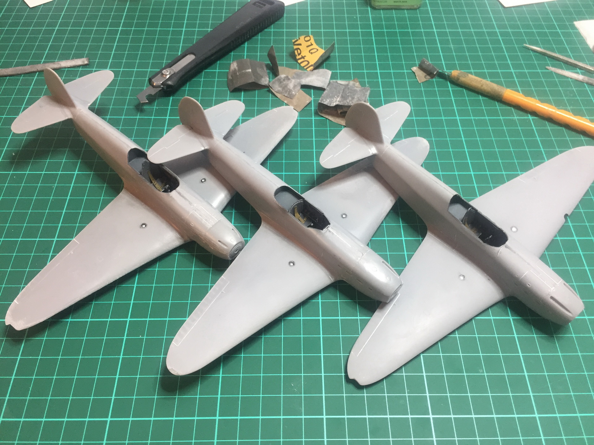Продолжим. Поженил фюзеляж с крыльями... Много нецензурных слов... Из трех более менее сошелся только один. Все таки ЛНД есть ЛНД, к слову , такой же Як от Южного Фронта состыковался более приятно. Сделал остекление топливомеров из пленки. На данный момент швы залиты жидкой шпатлевкой от Aurora hobby. Так же уменшил толщину стабилизаторов.