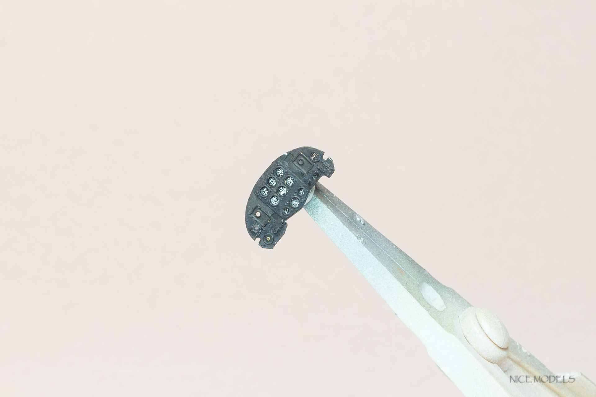 Продолжим. Установил БАНО, перед их установкой сделал имитацию лампочек. На як-1Б зашпаклевал БАНО и посадочную фару. Из латуни 0,15 мм попробовал имитировать внутреннюю часть посадочных щитков. На фото самодельные и травленые от Армори.