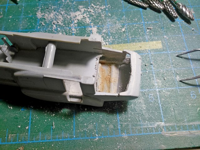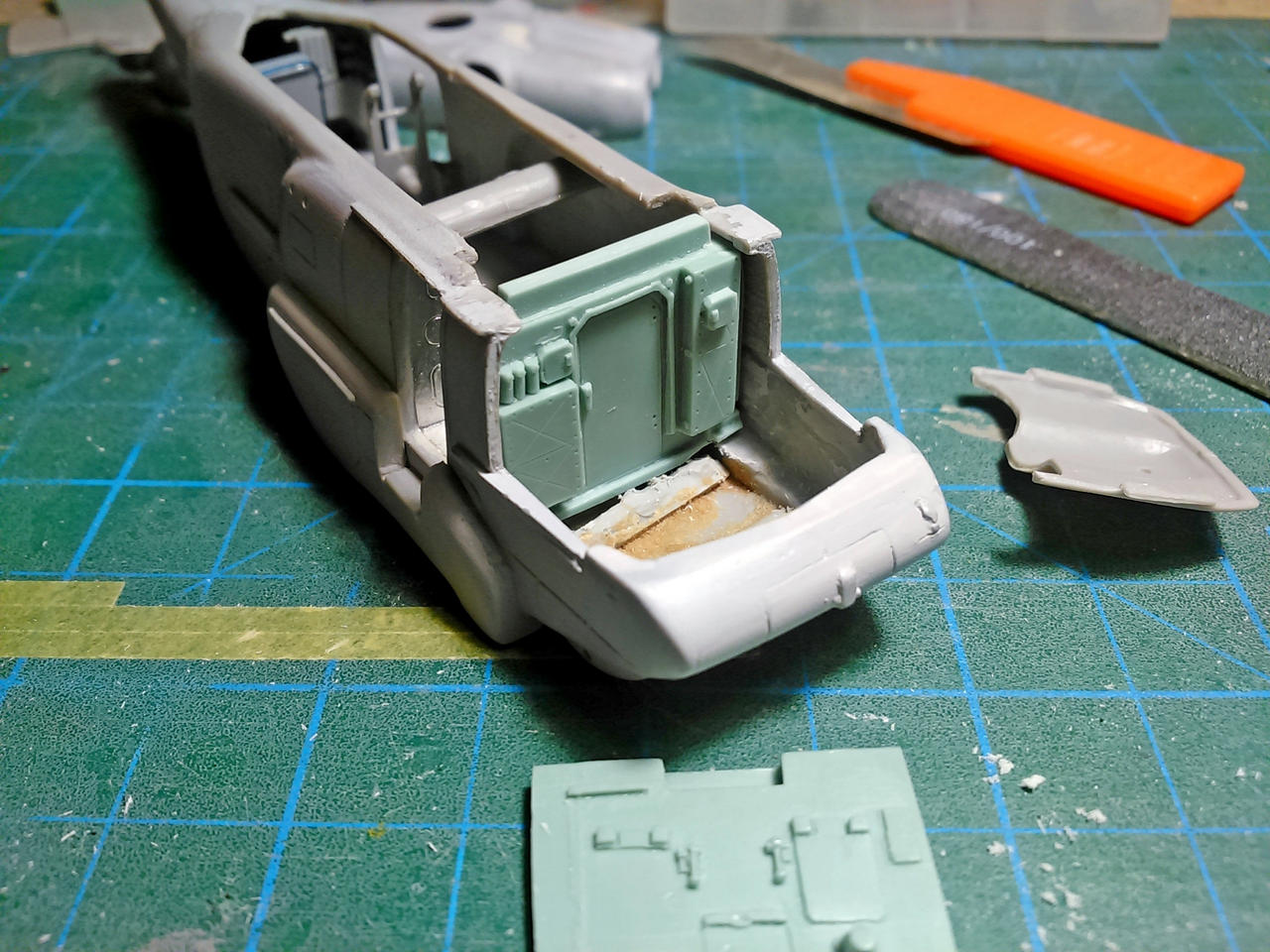 Остатками деталей от разных моделей доработал внутреннее пространство отсека с радиооборудованием