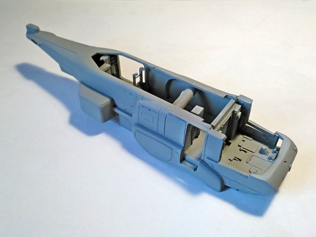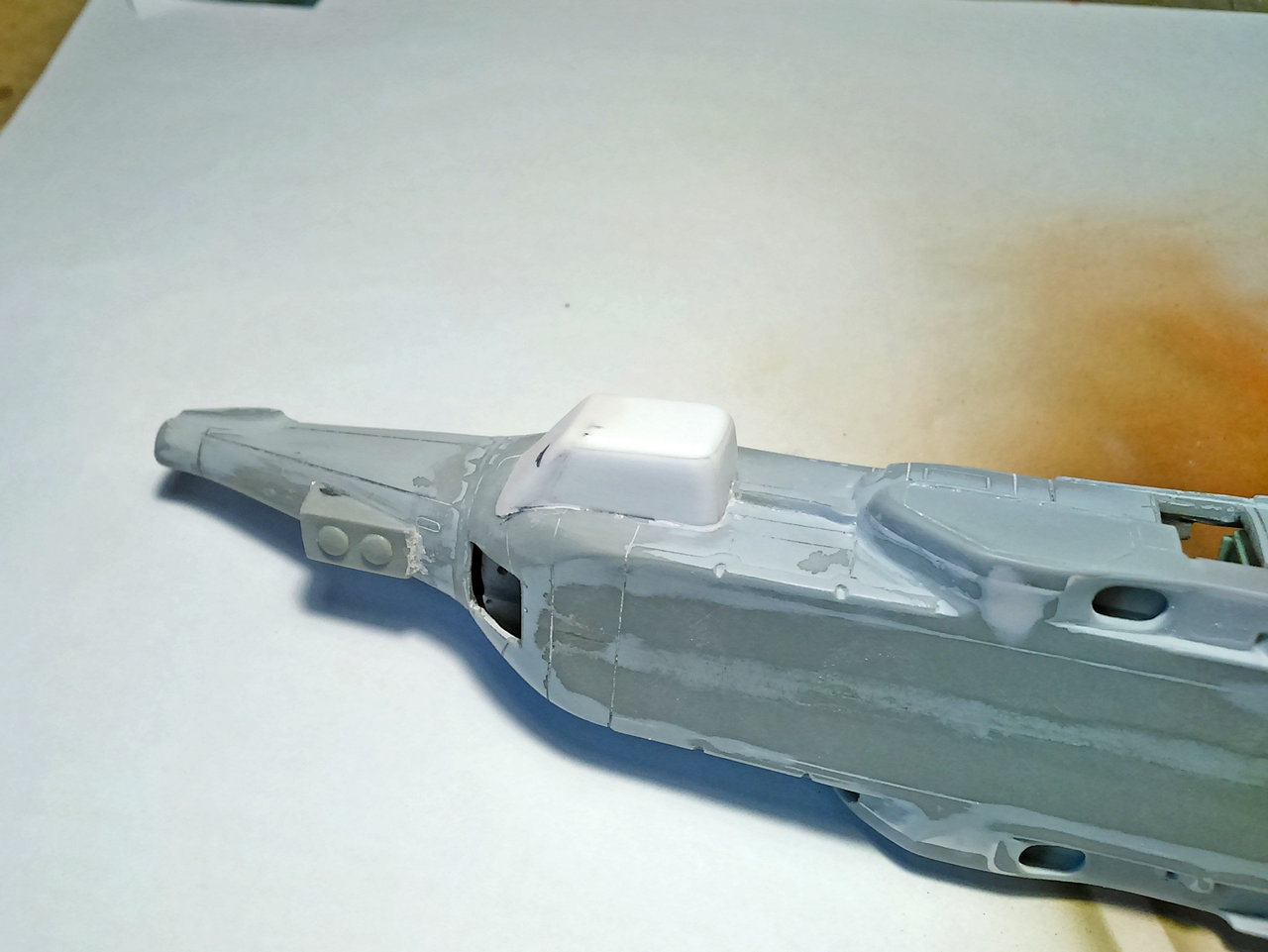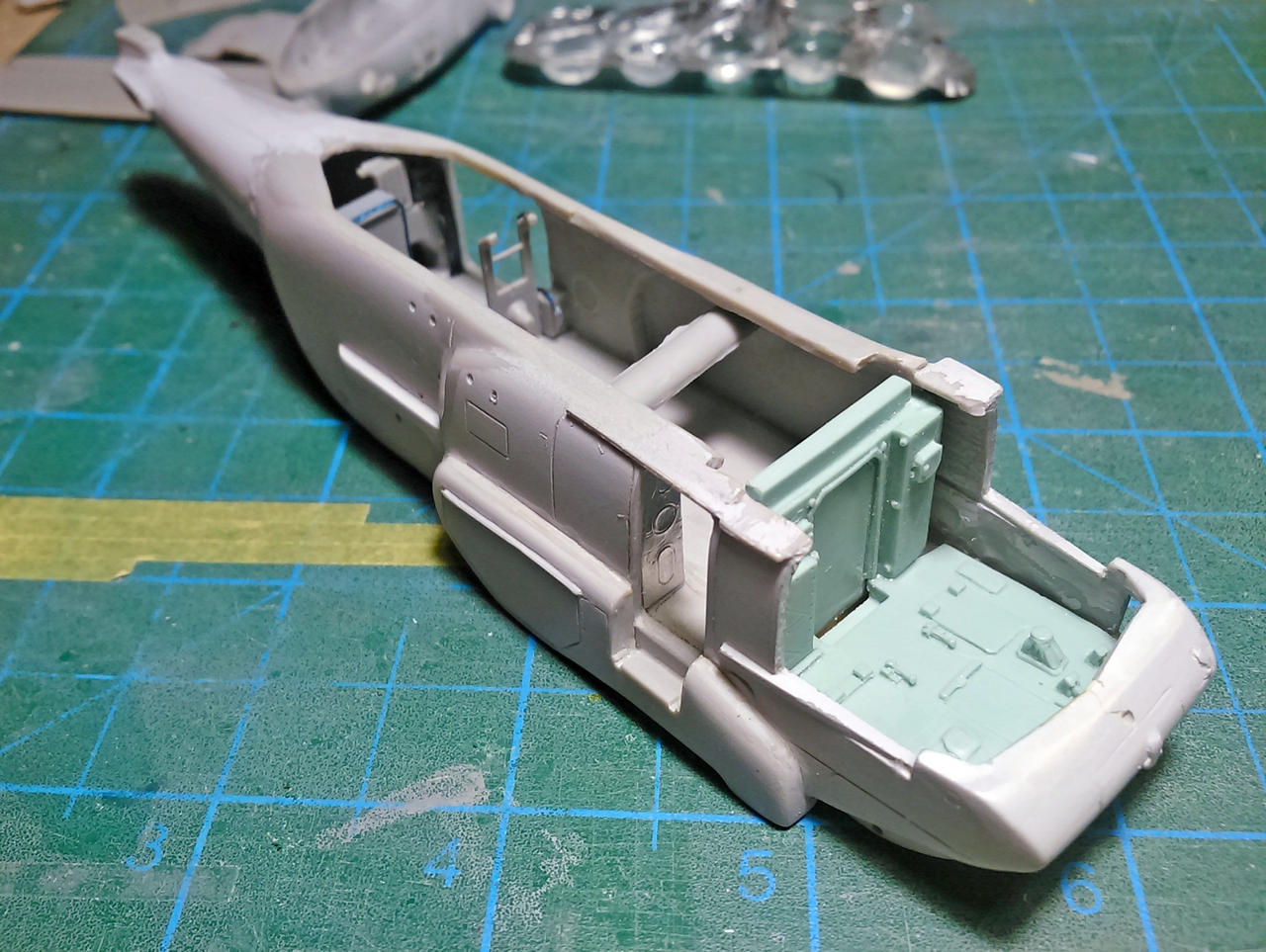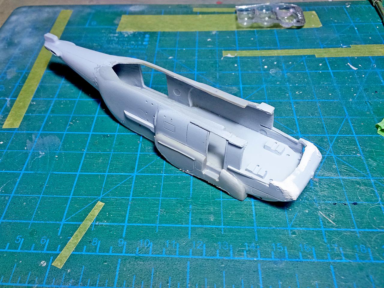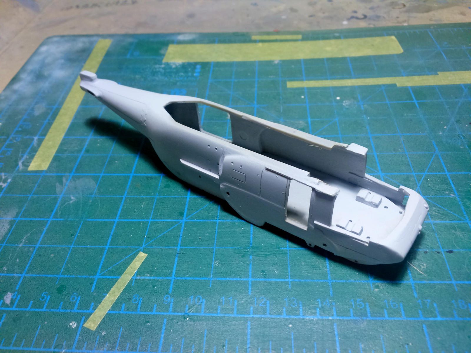 - собраны половинки фюзеляжа и вклеен пол кабины, море суперклея, шпаклёвки и слой грунта
