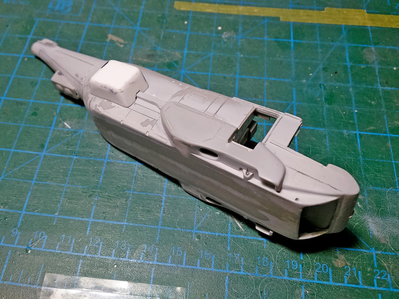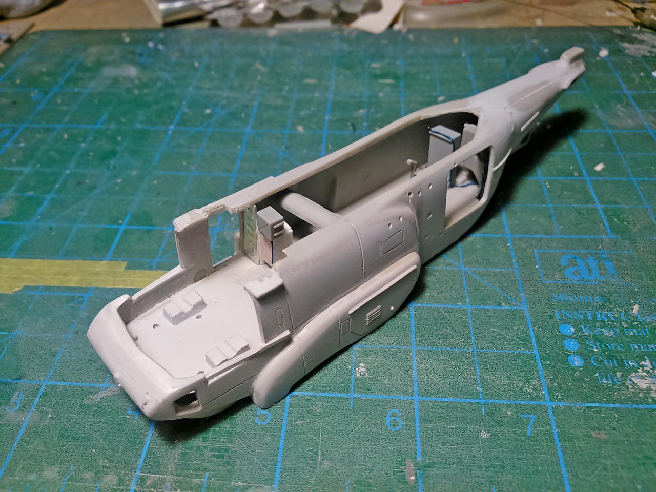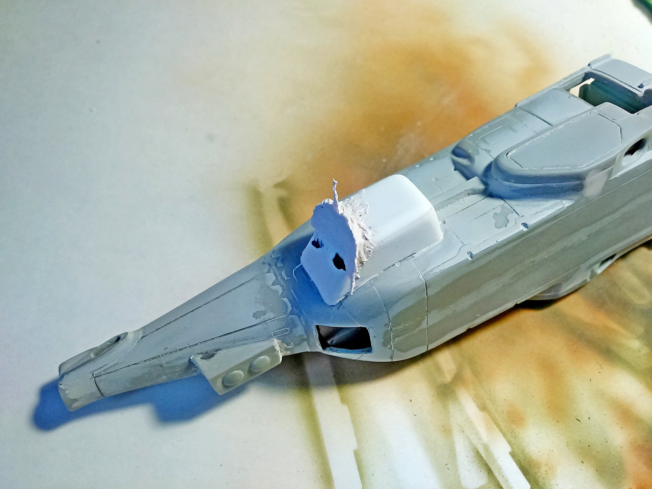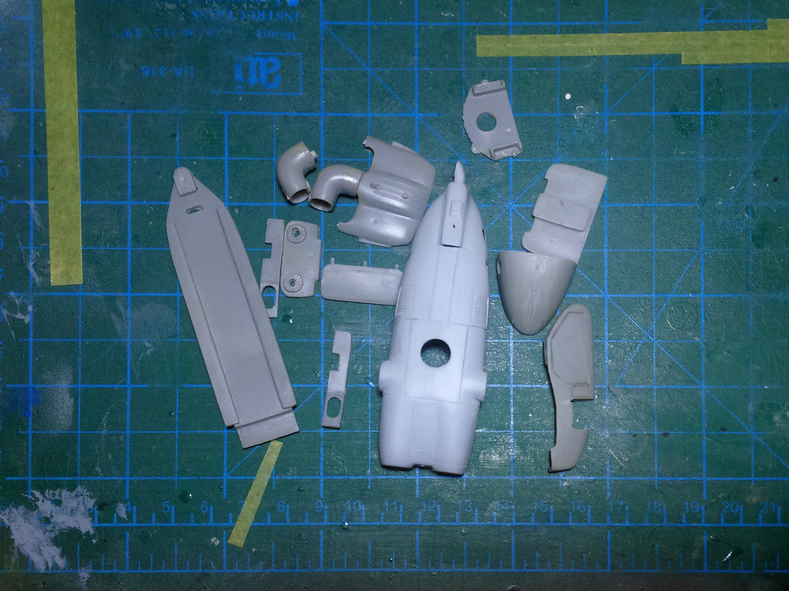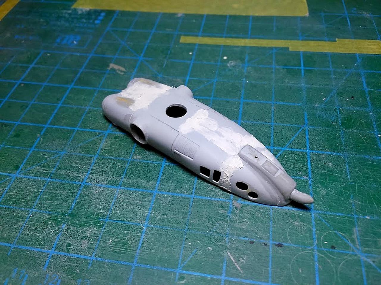 - собраны половинки фюзеляжа и вклеен пол кабины, море суперклея, шпаклёвки и слой грунта