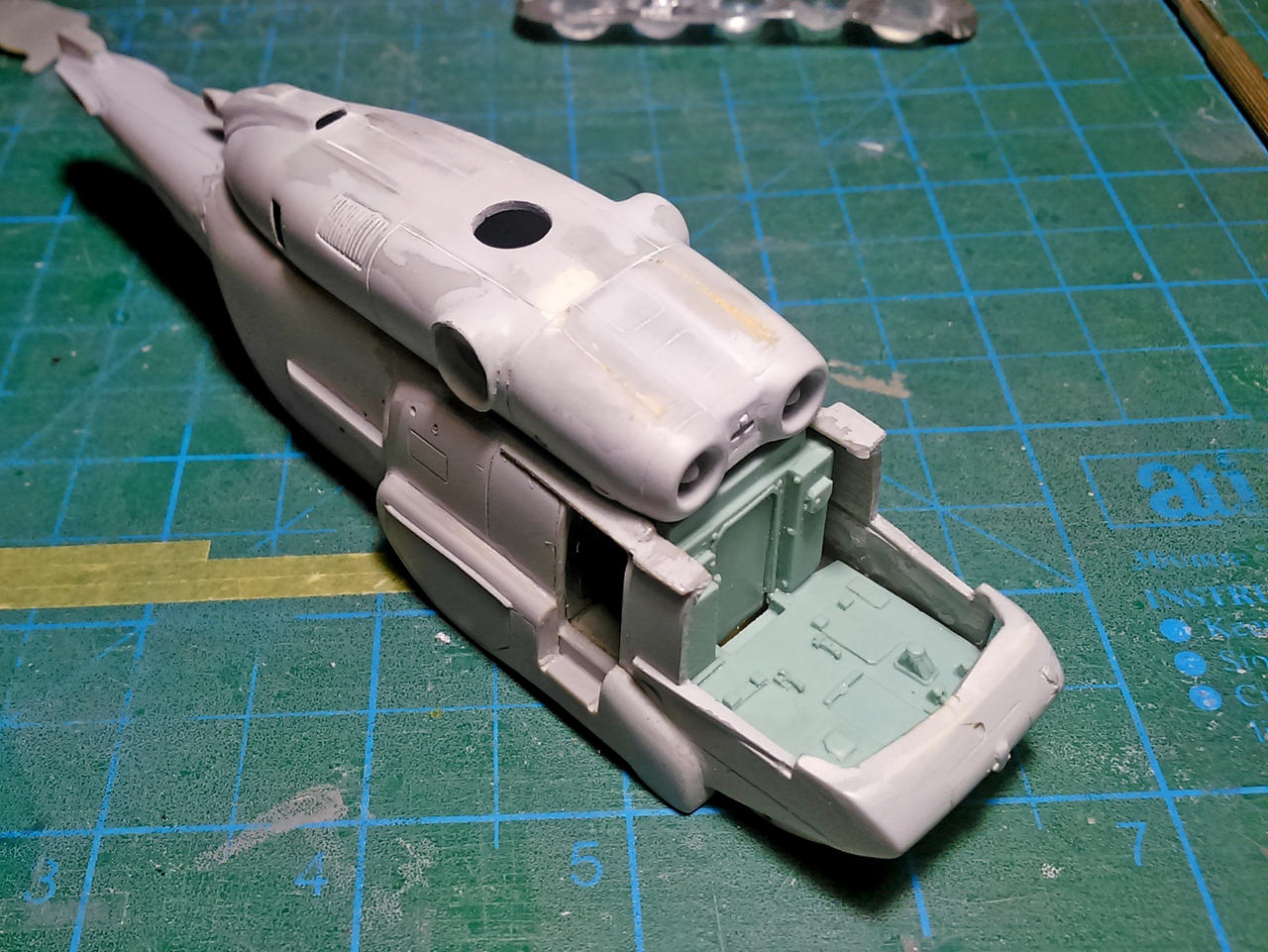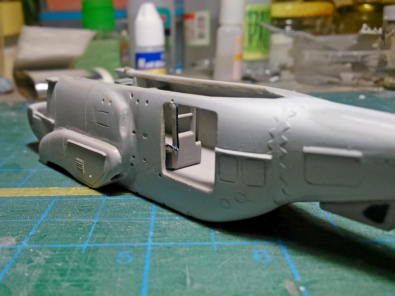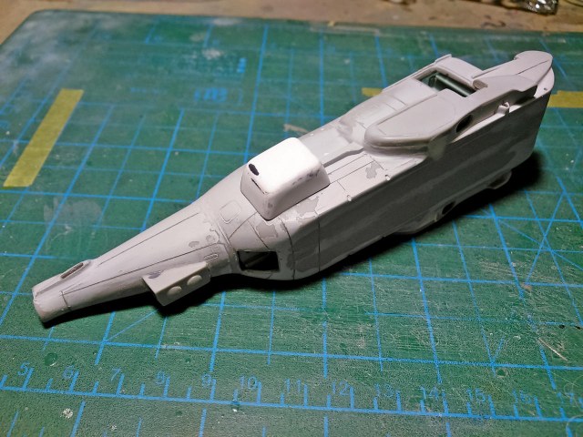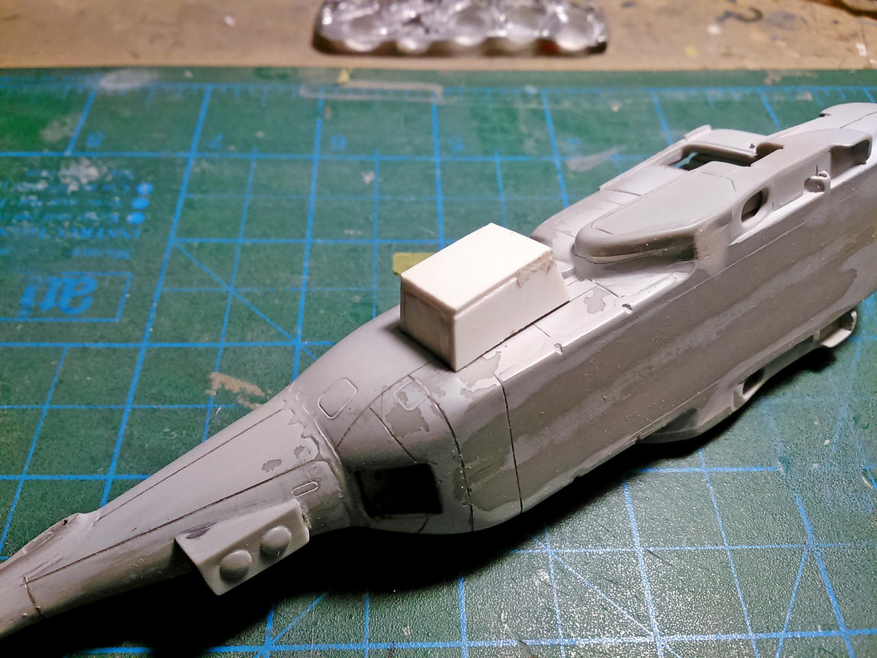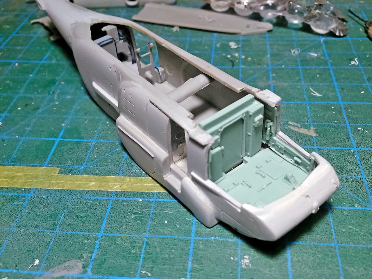 - собраны половинки фюзеляжа и вклеен пол кабины, море суперклея, шпаклёвки и слой грунта