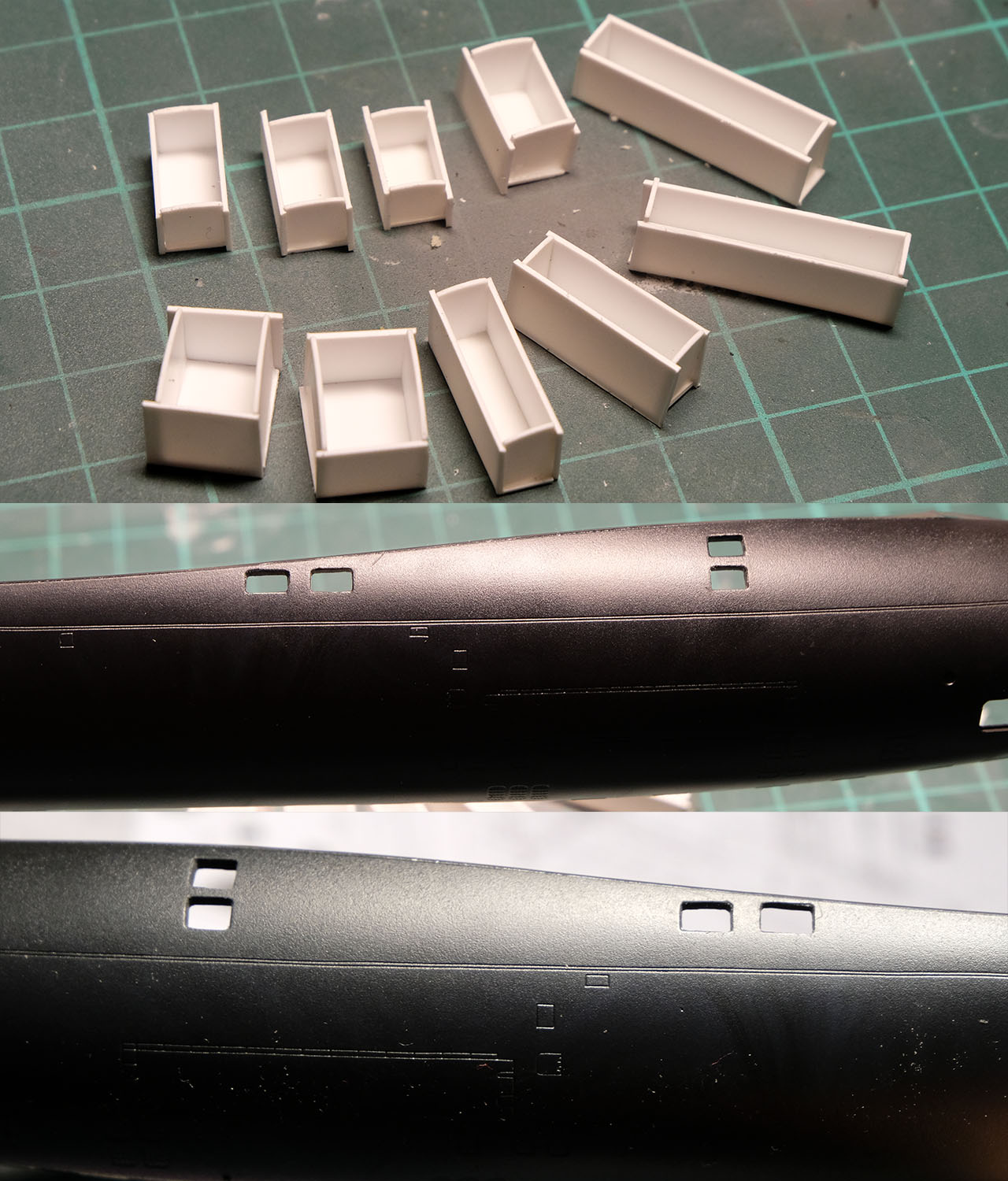 Шпигаты (16 штук) скорее всего придется вырезать, ибо их имитация