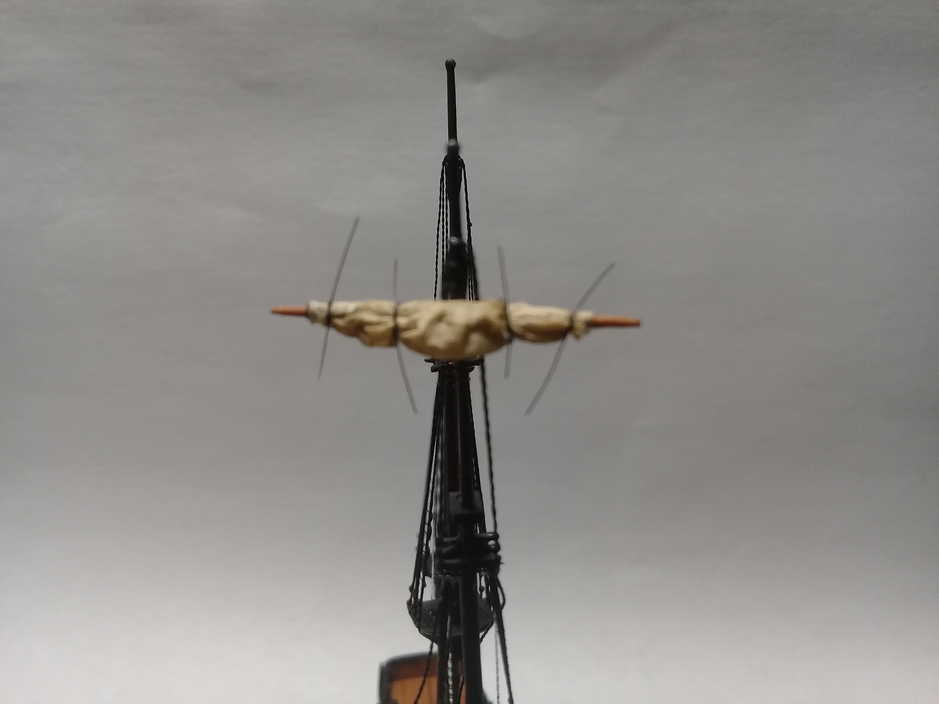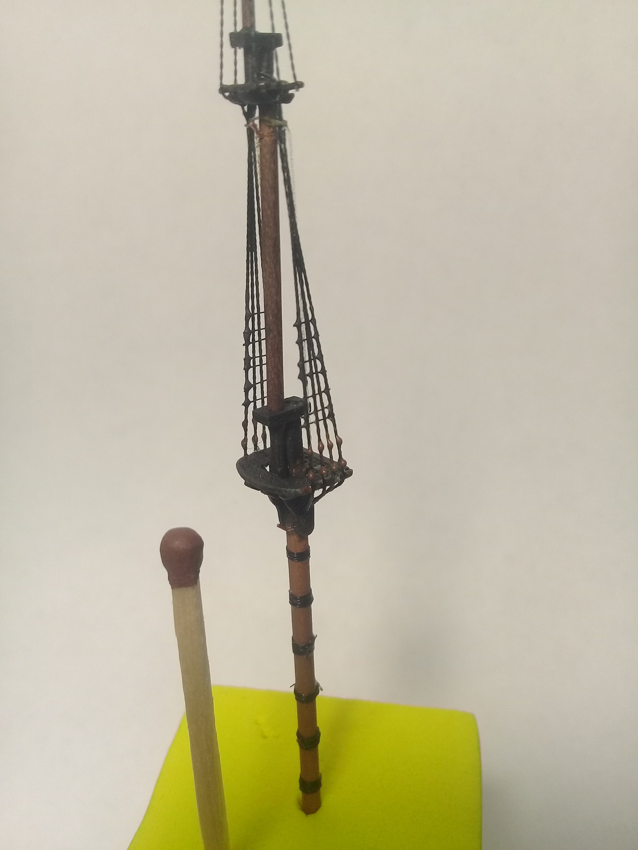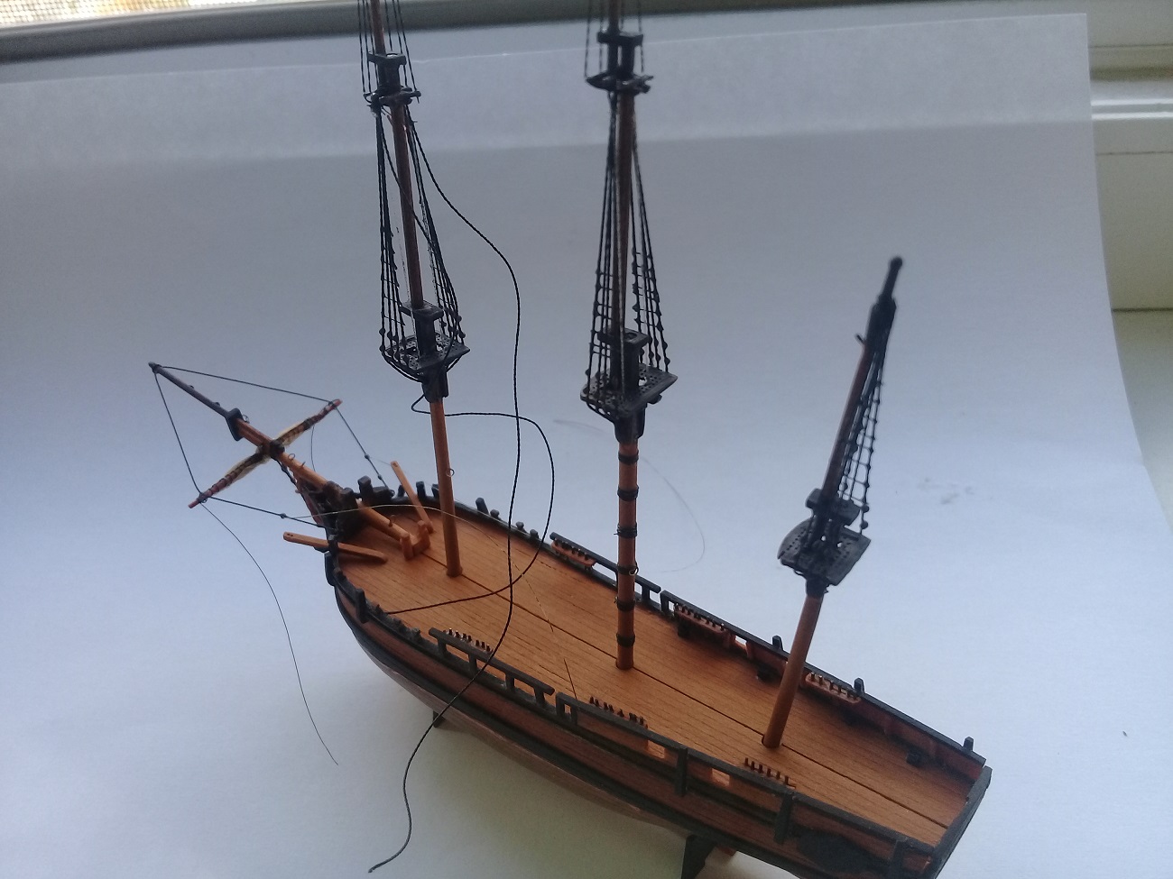 Начал делать стень-ванты, юферсы обозначил ПВА и подкрасил коричневым.