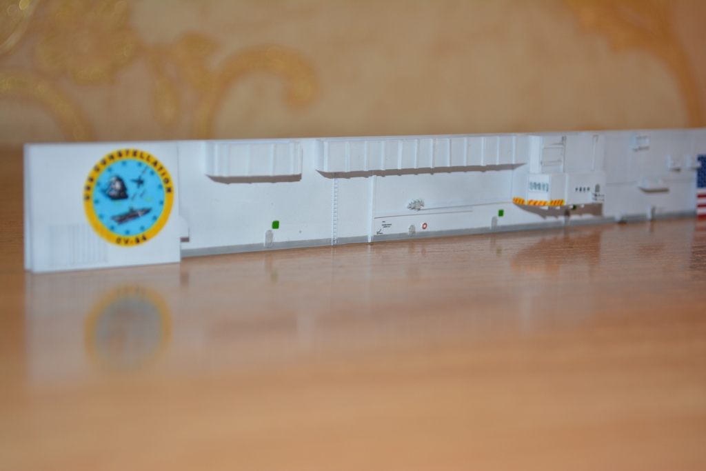 Ну чтож, на данном этапе стенки ангара со всеми элементами собраны, покрашены и установлены на свои места. Все сделано из листового пластика толщиной 0,8 и 0,5мм. Думаю надо будет пройтись еще раз лаком по всему этому добру. К сожалению не удалось избежать небольших щелей между стенками и палубой - попробую обыграть такие самые видные места установкой инвентаря, техникой и прочим скарбом который будет внутри ангара.