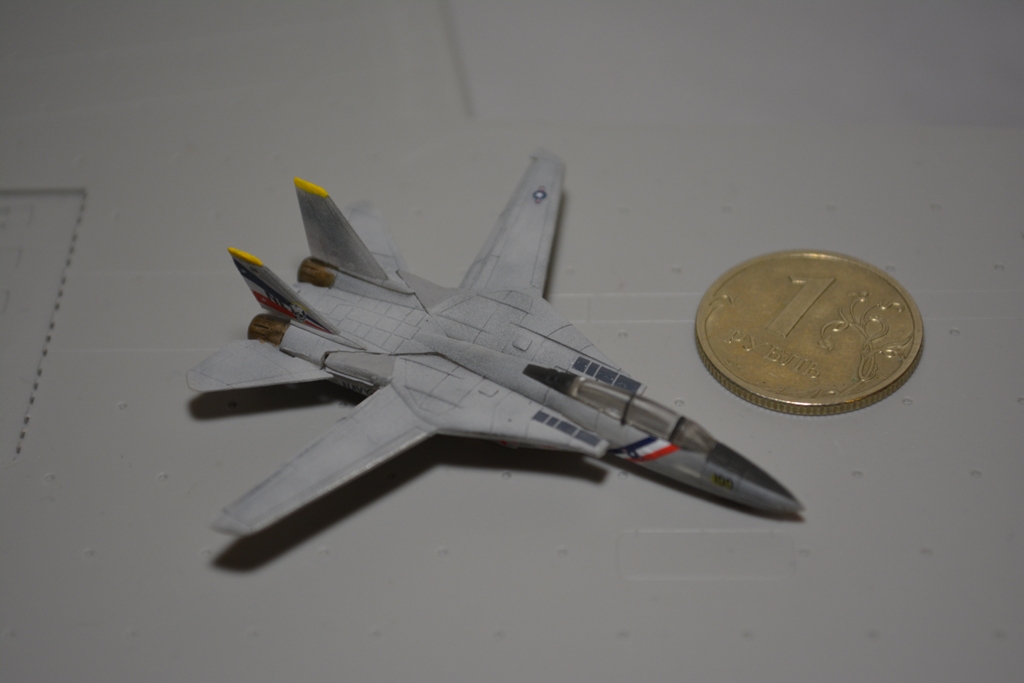 . Опустил закрылки и добавил гак, остальное все из коробки. Окрашивал эту блоху как большую, прешейдинг, основной слой, сопла аж в 3 слоя (серебро, бронза и черная смывка). Смывку по самому самолету не стал делать, так как в данном масштабе ее и не видно должно быть. Постарался оставить фонарь прозрачным (не очень мне нравятся варианты с окрашеным фонарем в черные, синие и прочие цвета), закрывал его масками на сколько смог при таком масштабе - вроде удалось, результатом доволен. Вообщем, надеюсь следующие будут лучше )