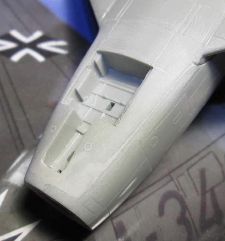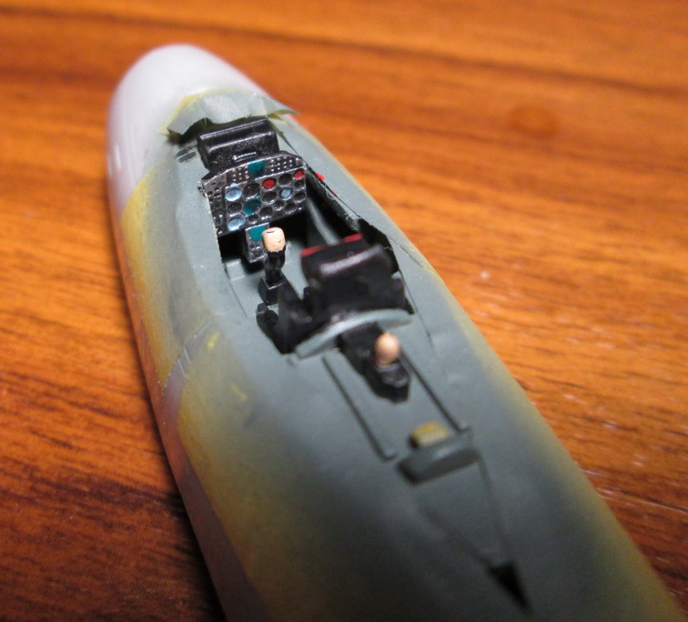Итак, соединил фюзеляж и крылья. В районе носа шпаклевки понадобилось неприлично много для Хоби-боса. По кабине пилота решил пройтись сухой кистью.
