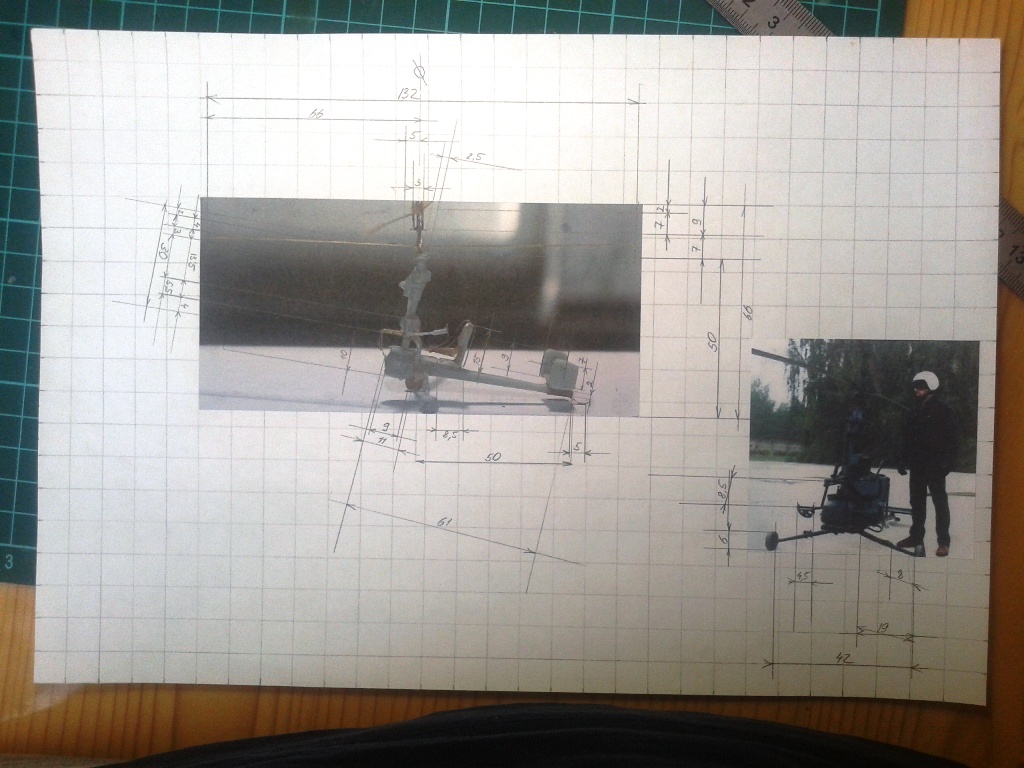 Начну с того, что для изготовления практически любого изделия желательна хоть-какая нибудь техническая документация. Не найдя никаких габаритных размеров, состряпал подобие графической схемы в соотношении с масштабом предполагаемой модели. Размеры конечно не все, и многое придётся досоизмерят по ходу стройки, и имеющиеся тоже корректировать.
