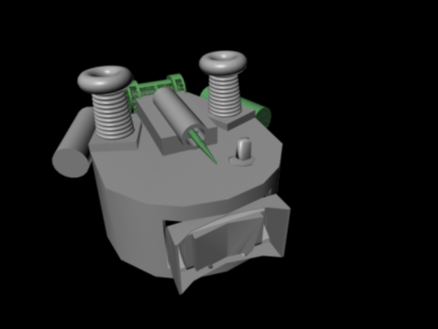 Предусматривается сделать действующими катушки Тесла (качер Бровина), если не удастся или начнёт плавится пластик, будут сделаны муляжи. Пока точно не решил, одна или две катушки. По легенде между двух находится гарпун с проводом, с помощью которого поражаются цели током. Либо одна катушка с гарпуном и действующим так называемым ионным двигателем, который будет создавать вокруг танка "силовое защитное поле" (кольцо плазмы с разрядами)