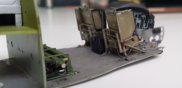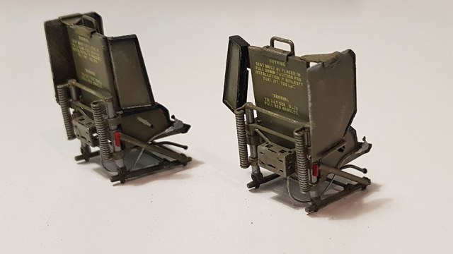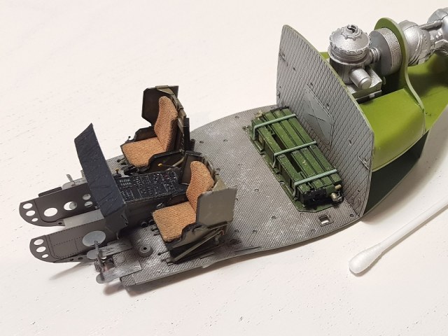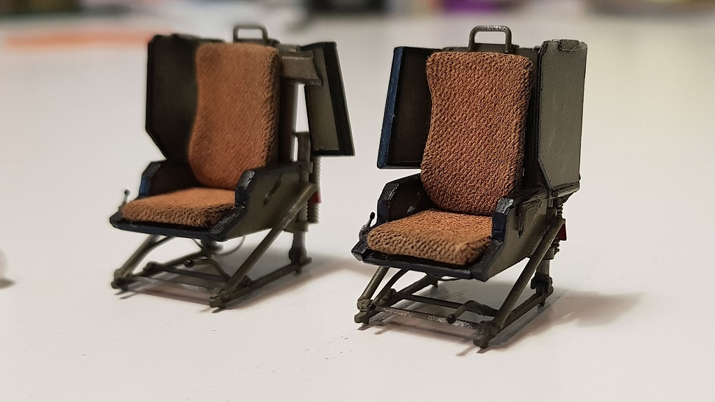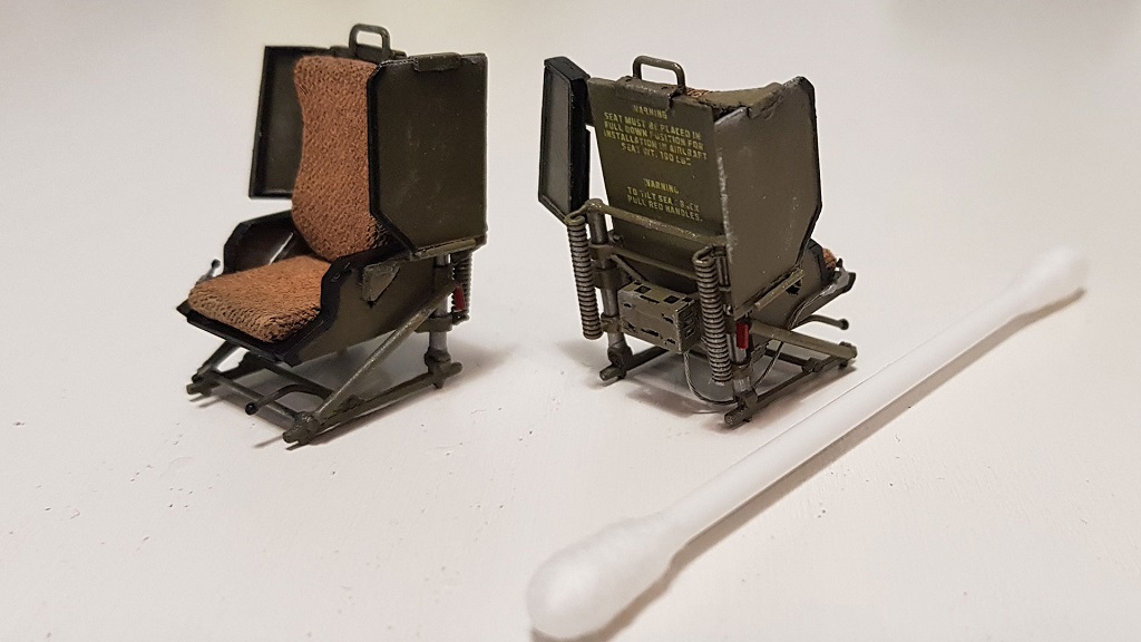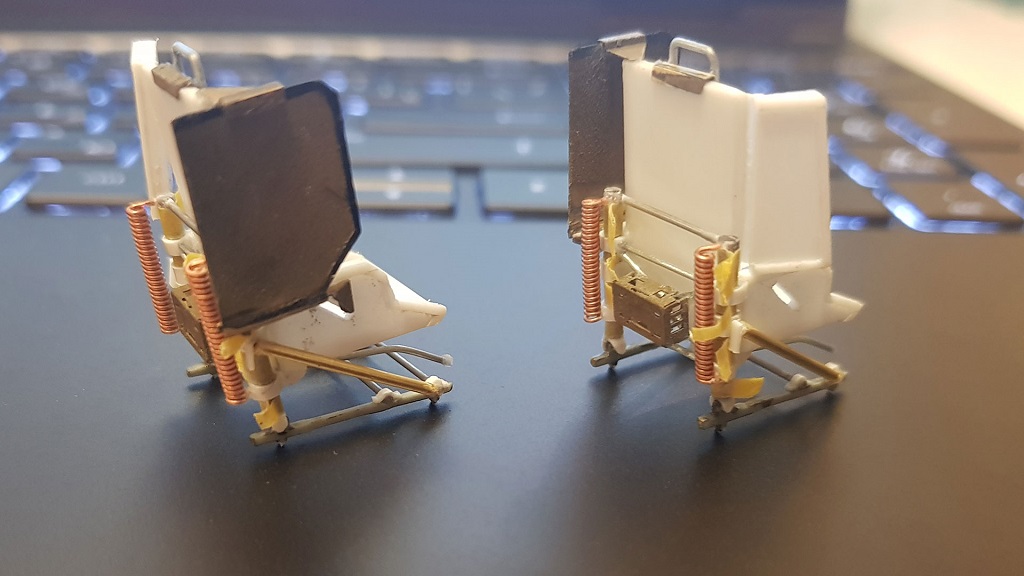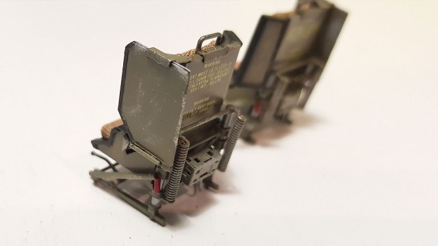3. Полностью выпилил кресла пилота и стрелка. На каждое кресло ушло примерно по 55 самодельных деталей и 3 детали травления от Eduard.