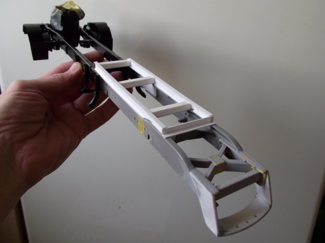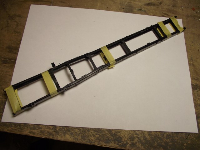 У меня этот процесс вызвал затруднения и удалось сделать только со второго раза. Клеил на супертекучий клей Тамия. Как правильно склеивать раму полуприцепа, которая в 2 раза длиннее? Может, есть какие-нибудь способы/приспособы?