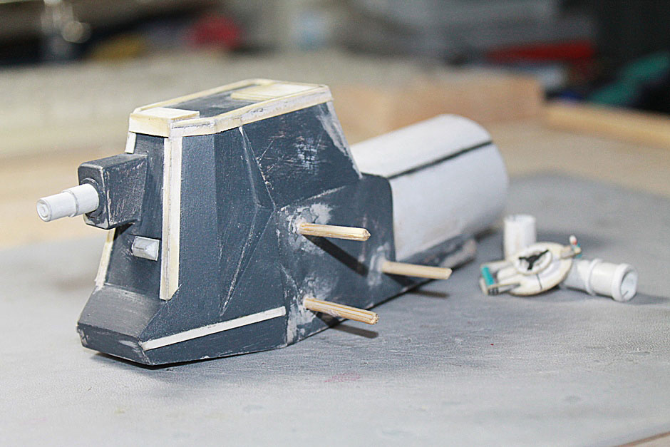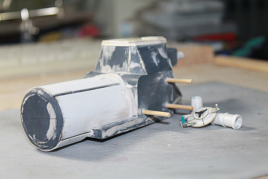 На корпусе осталось сделать фару, манометр и трубку непонятного назначения