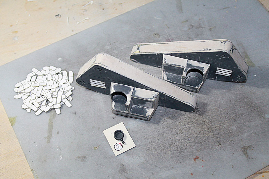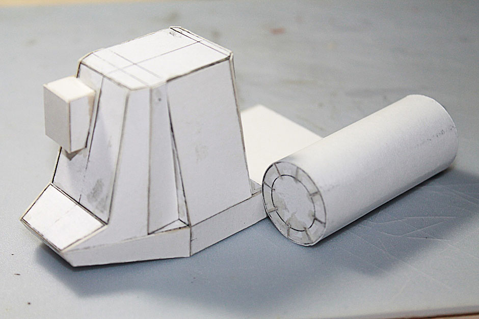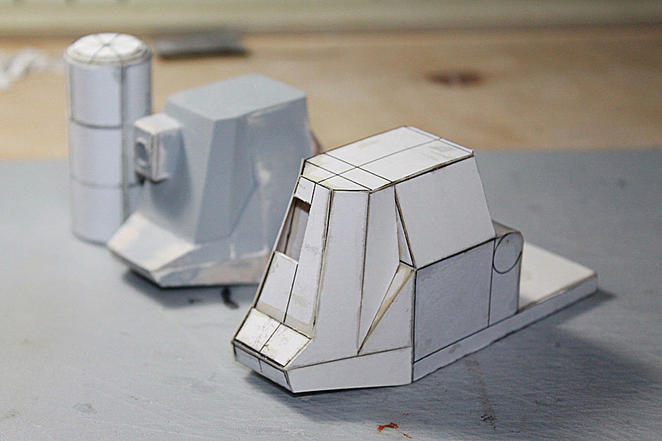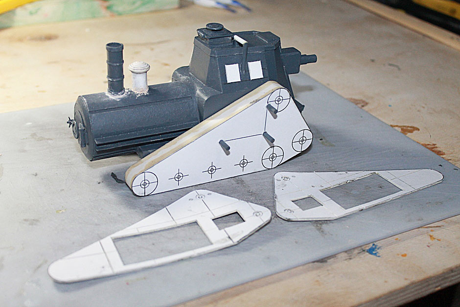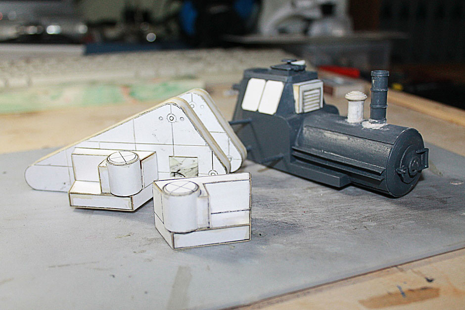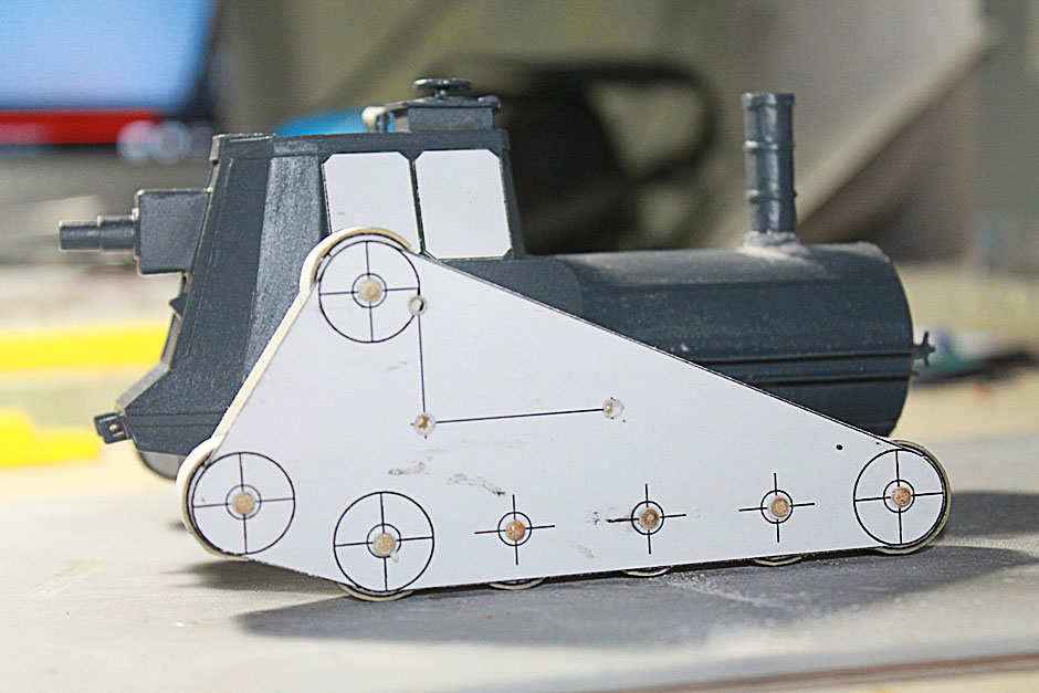 Продолжаем бумажные игрища: сделал защиту непонятных баллонов, выгнул трубопроводы непознанного назначения и сделал задние части ходовой