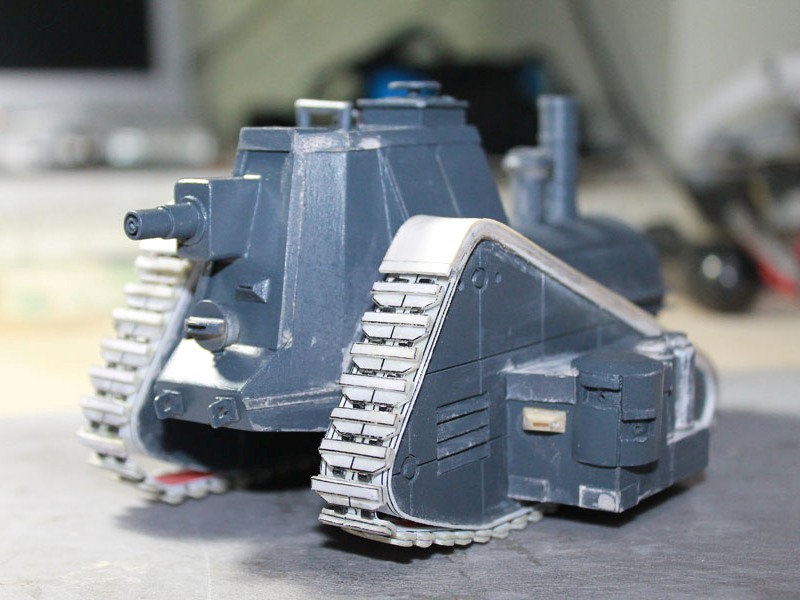 Вчера посмотрел я на изображения танков времён ПВМ (явно ведь геймдизайнеры их обликом вдохновлялись) - и решил переделать ходовую. Ибо не видны катки на танках, у которых гусеницы корпус охватывают - сделал простецкий вариант. Впрочем, первоначальный не выбросил - отставил пока в сторонку, мало ли...