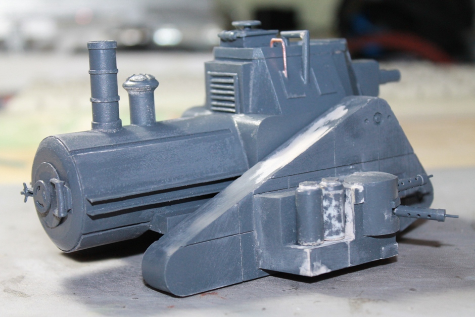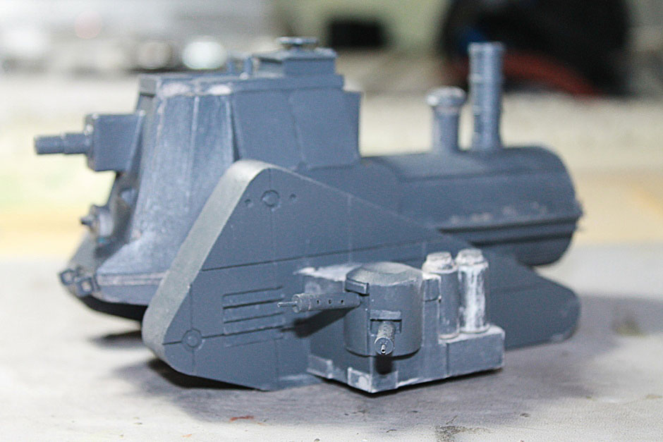 Итак, закончил корпус и котёл. Загрунтовал, самые беспроблемные места прошелся шкуркой, сфотографировал и прошелся шпаклей по местам проблемным.