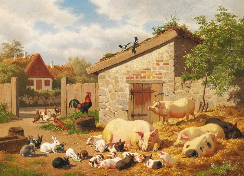 Подходит к концу работа над диорамой с артиллеристами. Но что-то подустал я войны. Под Новый Год хочется чего-то мирного. И вот выбирая календари наткнулся на фото картины датского художника Карла Хенрика Бёга (Carl Henrik Bogh), жившего в 19 веке (1827-1893) "Летний день в сельской местности со свиньями, цыплятами и кроликами за фермой", 1870 и понял, кукую диораму я хочу сделать следующей.