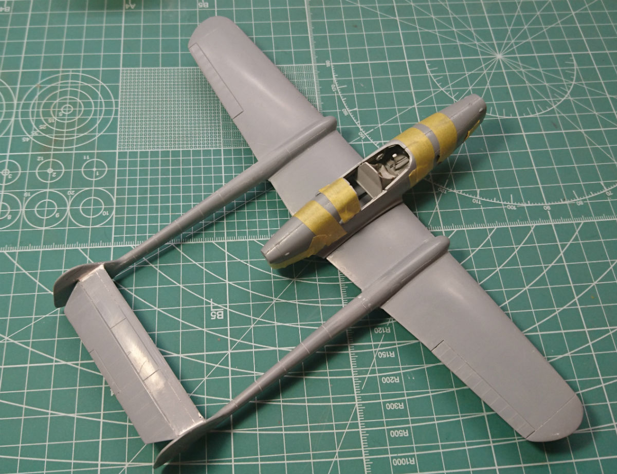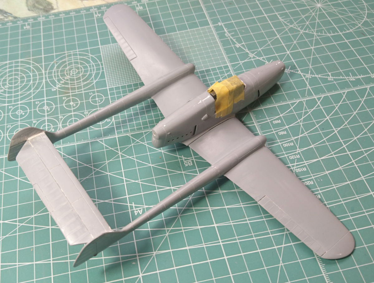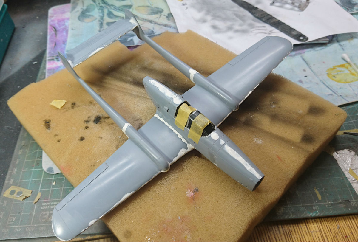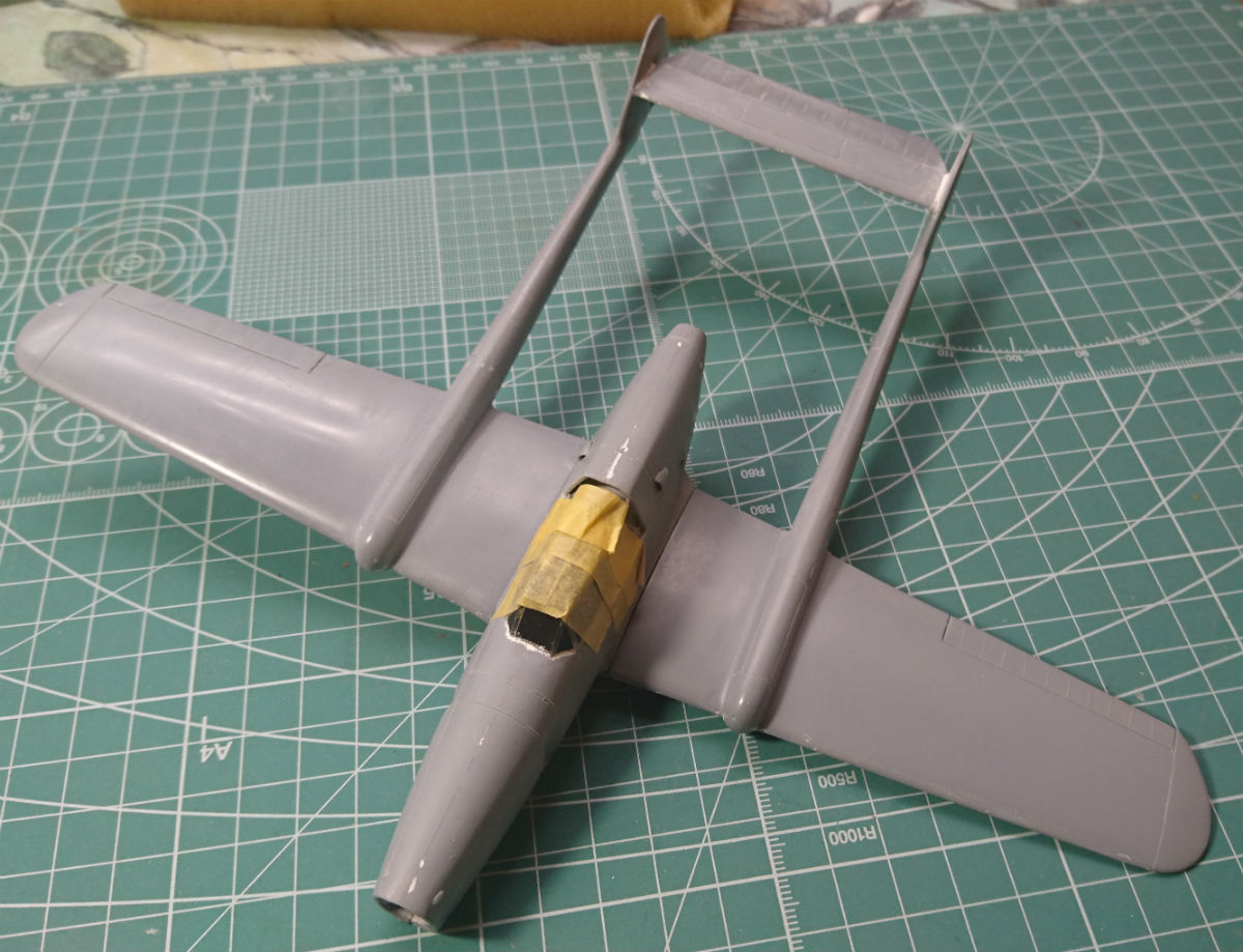 Внедрил фюзеляж и ещё раз прошёлся тамиевской шпатлёвкой по некоторым швам. Для лучшей текучести разбавил растворителем.