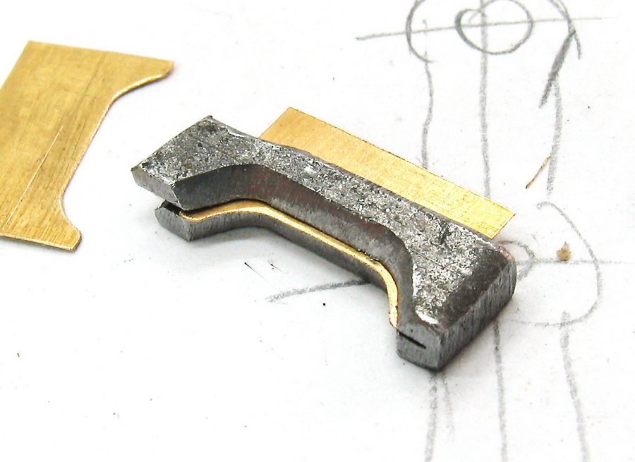 Меж тем напилил из латуни (0,2 мм) заготовки под пружинные стаканы, которые в пластике вид имеют просто непотребный.