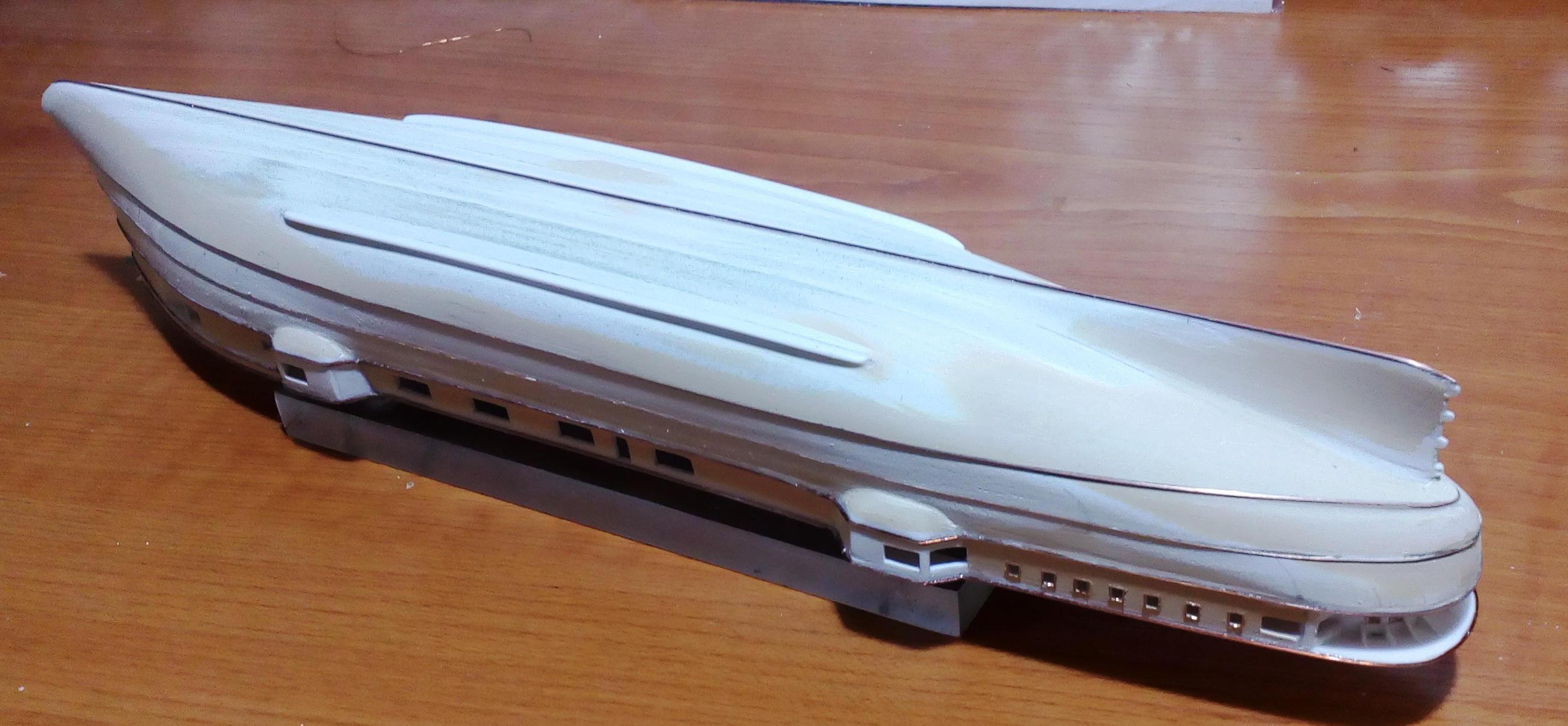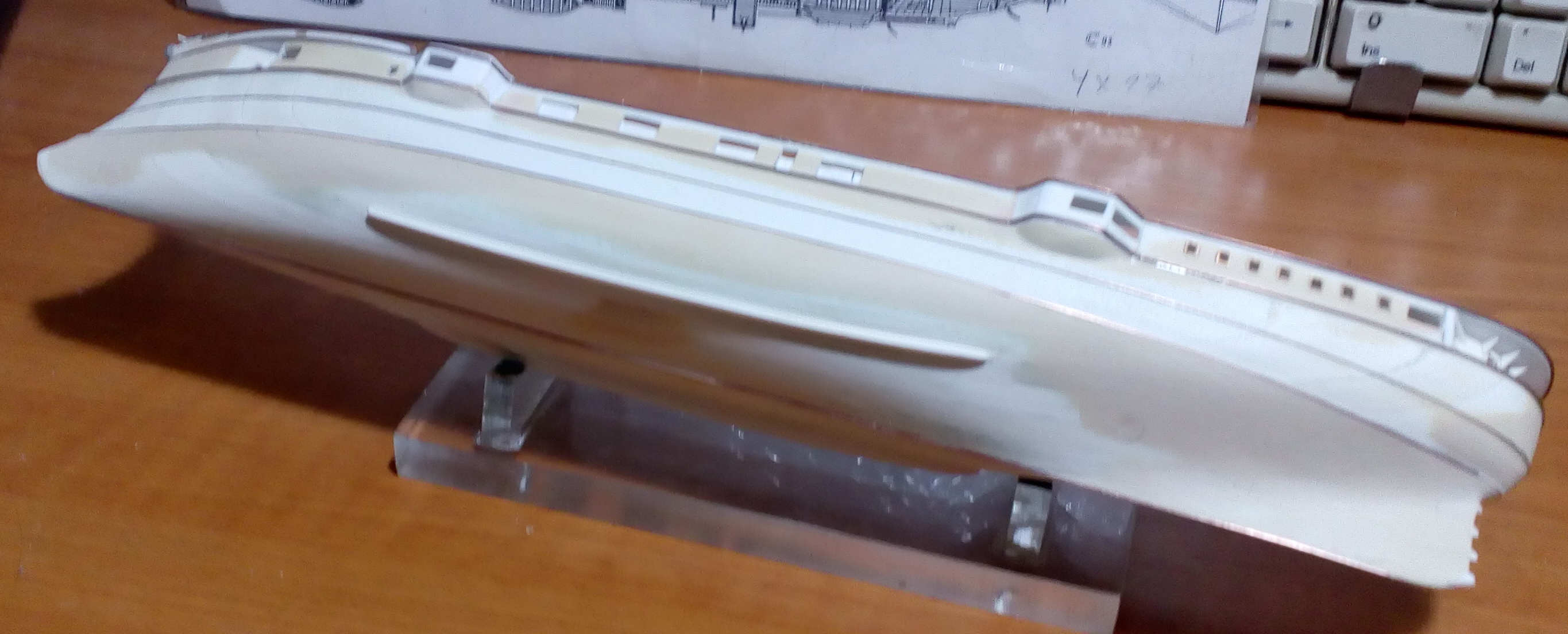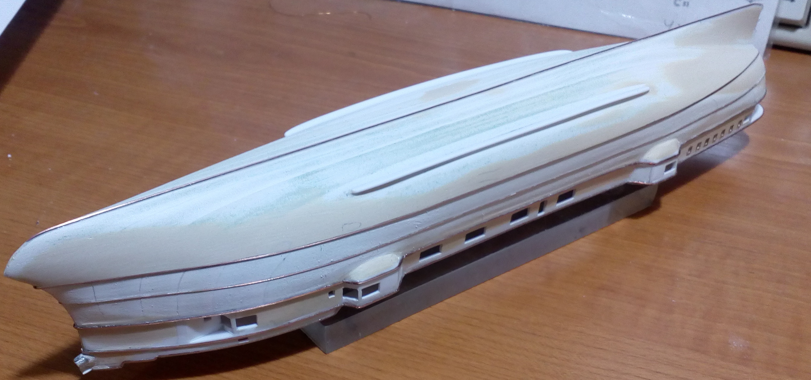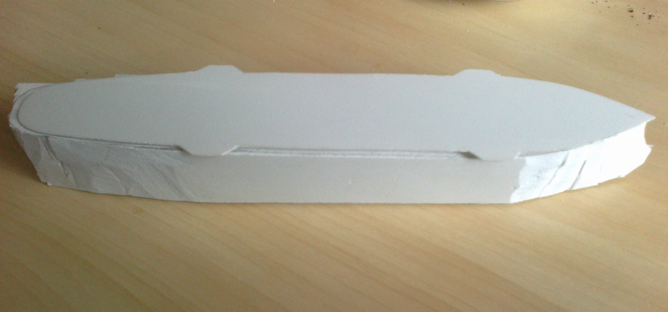 Вообще то я так пытался изобразить бронепояс, а не бархоуты, но благодаря Вашему замечанию открыл глаза по шире и увидел, что сделал все не правильно. Сейчас все сошлифовал с корпуса и делаю заново, согласно поперечного сечения.