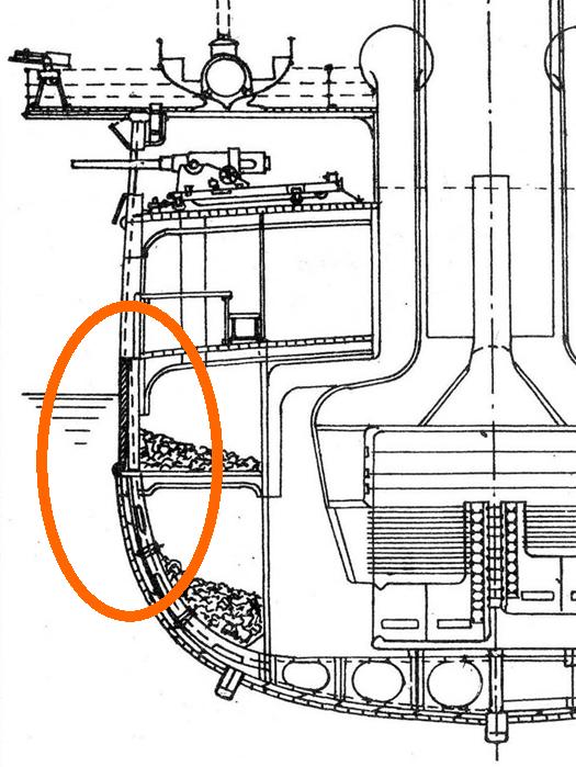 Судя по архивным чертежам и фотографиям, "ступенька" была выше ватерлинии.