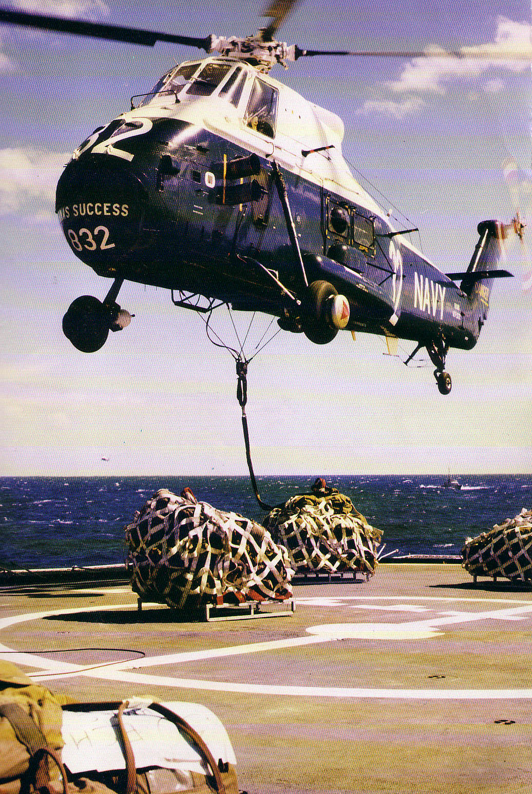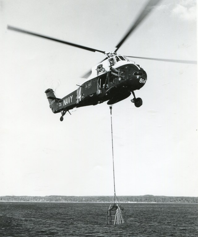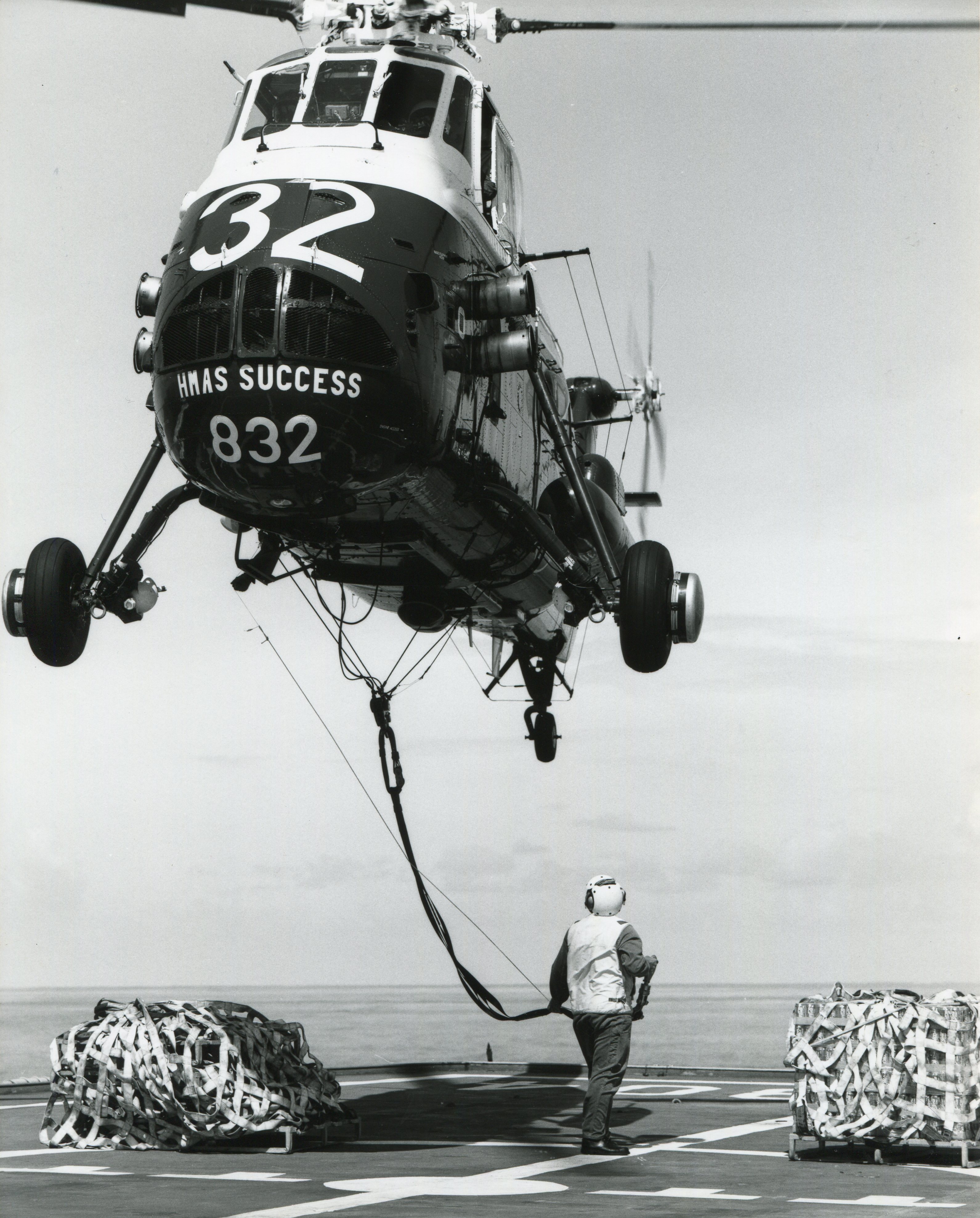 Длина центрального фала зависела от массы и габаритов объекта. Центральный отстегивался только вручную. Лебедка под брюхом использовали только для аппаратуры слежения субмарин и не более.