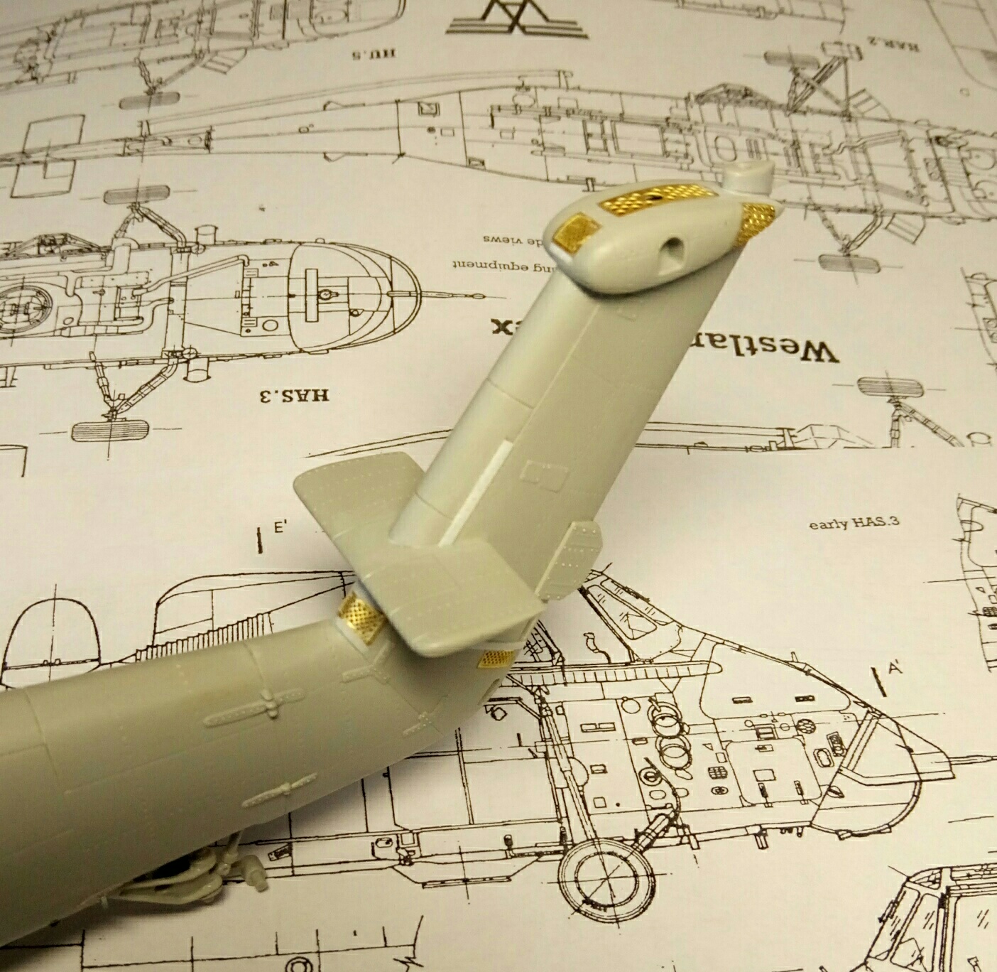 Мнение не навязываю, но по логике винт в полете под наклоном. а иначе стрекоза не сможет лететь вперед... только в верх . В таком положении винт удерживает автомат перекоса, но на стоянке он винт не держит, все механизмы "спят"... и естественно винт имеет наклон вперед.... Посмотрите внимательно на это...