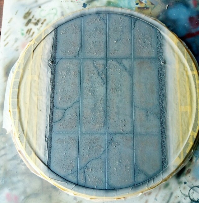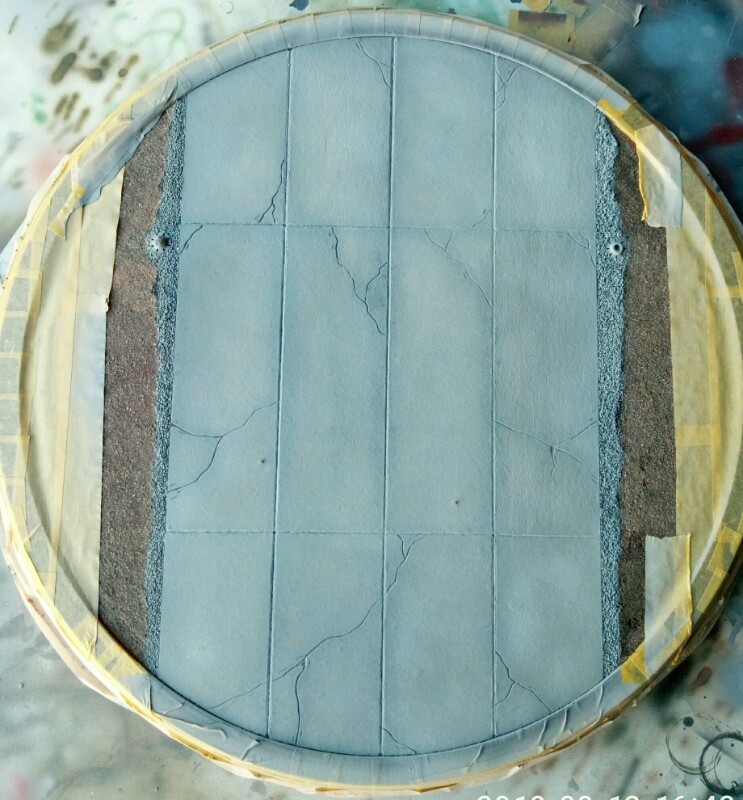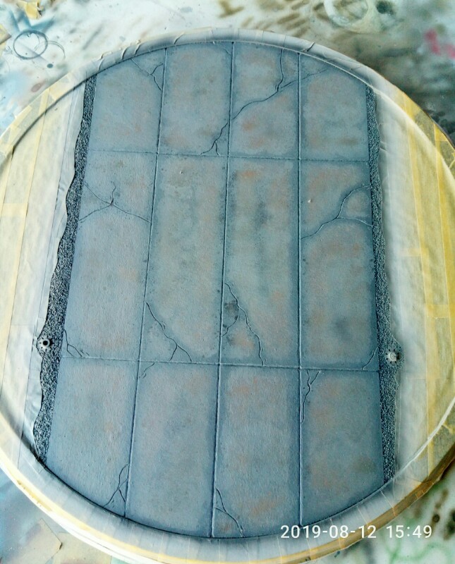 Сделал смывку и так сказать фильтр, скапливается по фактуре картона на мой взгляд то что надо. Эфект с солью убился, думаю что не стоит парится на плитах с ним . Попачкать маслом и думаю будет достаточно.