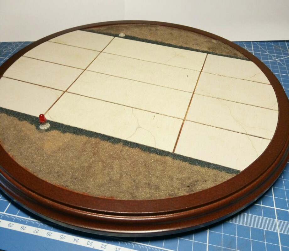 По краям аквариумный грунт, буду красить его как и плиты типа щебенка. Под траву нанес грунт из мешка для печных кирпичей