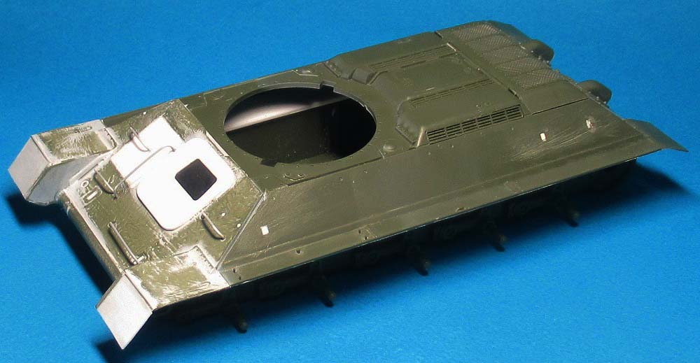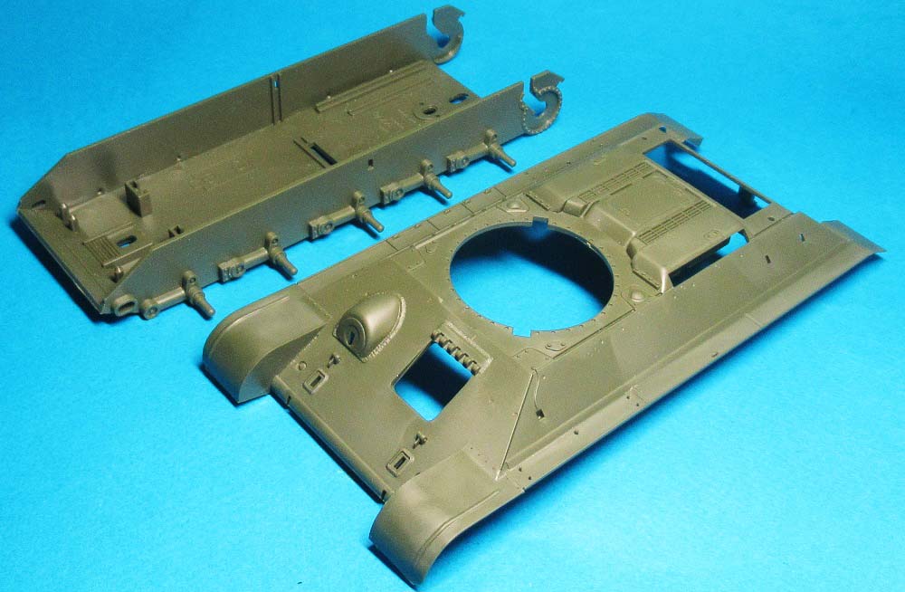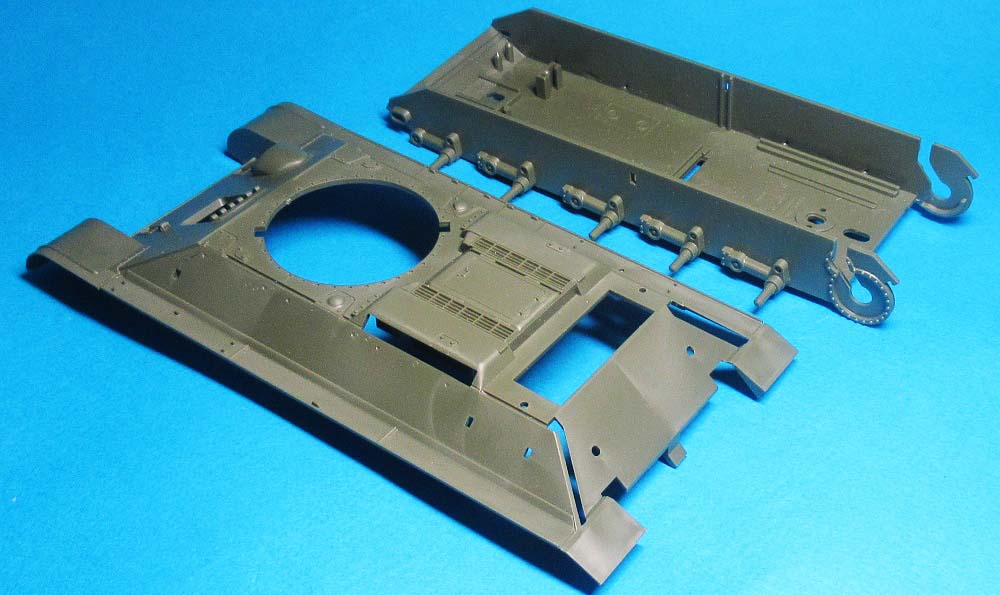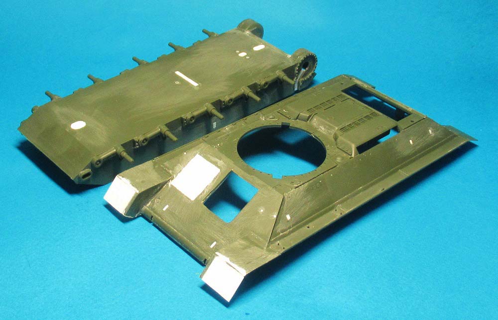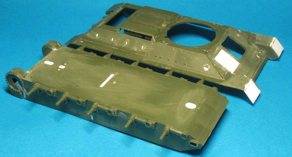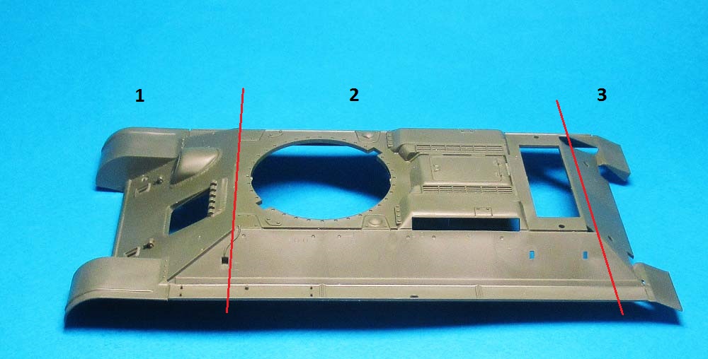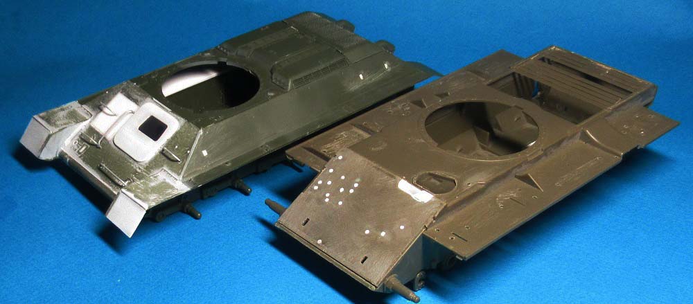 Пока соединять днище и крышку корпуса не стал - днище совсем "голое", требуется детализация и необходимо имитировать рабочее место механика-водителя, т.к. в крышке будет оконце.