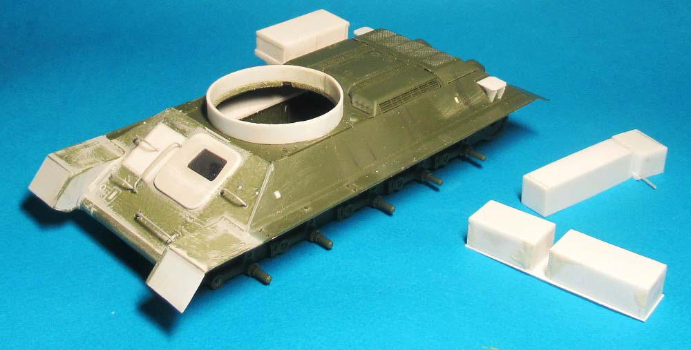 Да, в донорах Т-34-76. Но от тамиевской модели для конверсии возьму (взял) только корпус, который в свою очередь детализирую по фотографиям пожарного танка. Траки и катки (сегодня решили вопрос с катками) вышлет будущий владелец модели.
