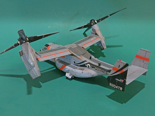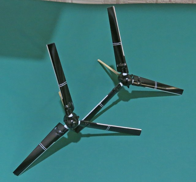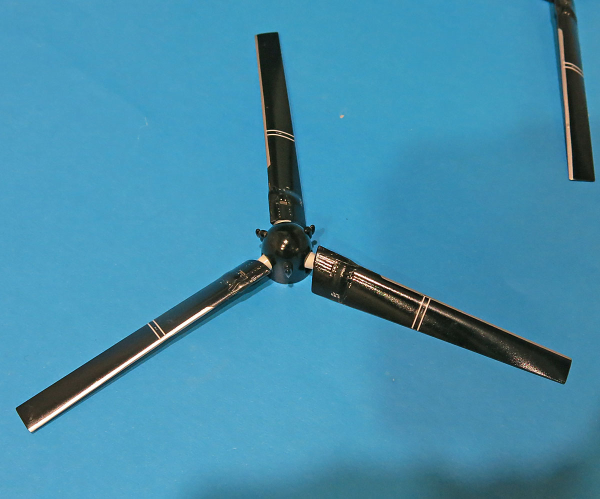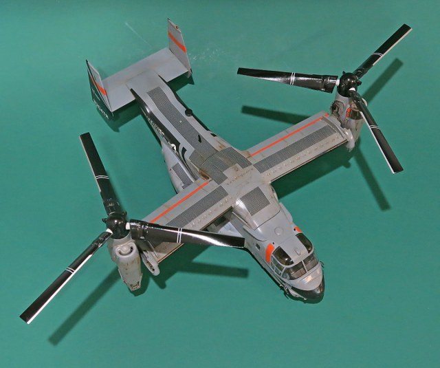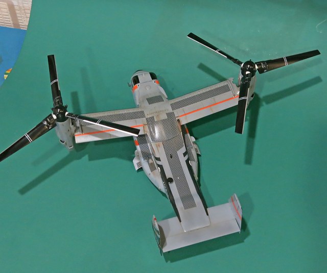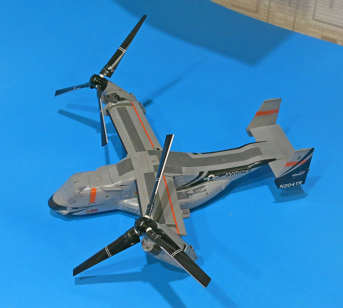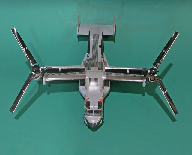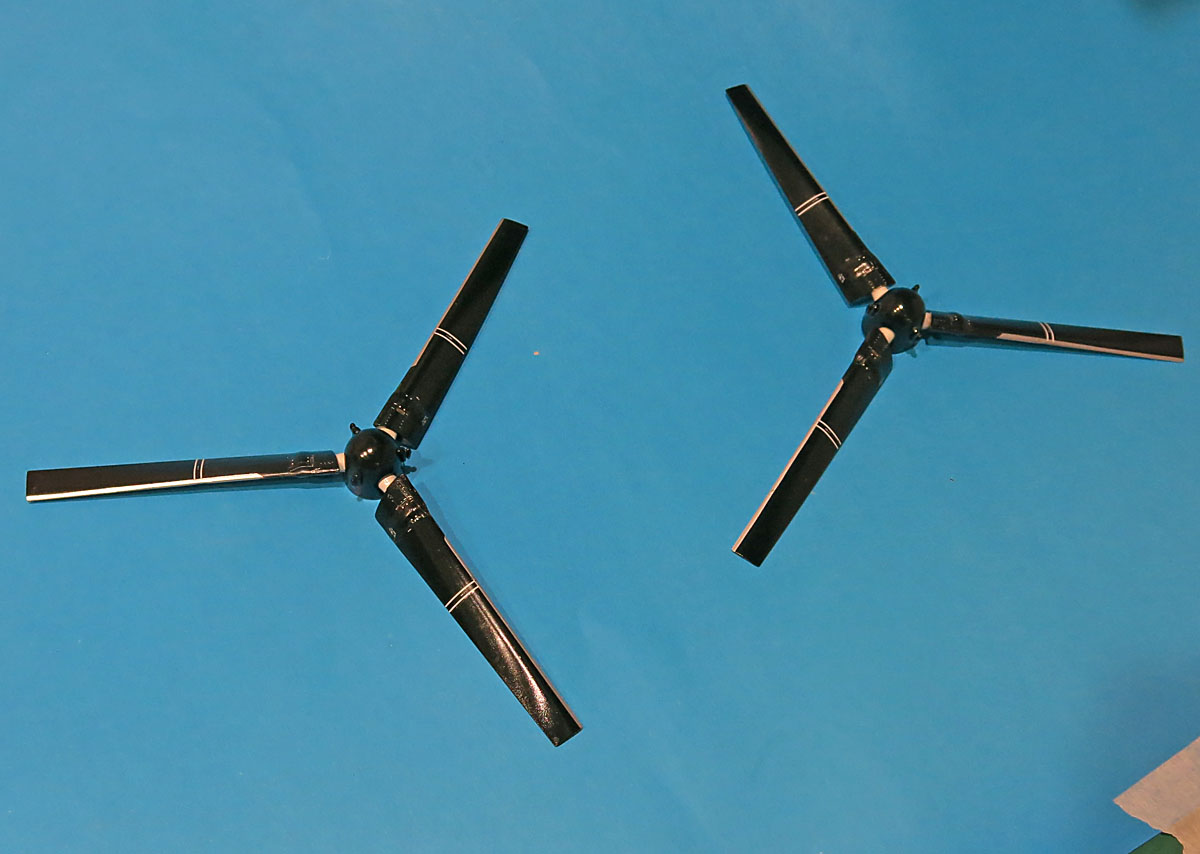 Винты вращаются, мотогондолы поворачиваются от 35-40 градусов (можно и ниже но надо колхозить подставку ибо стоя на шасси в землю упираются, как и на реальном) и до вертикали.