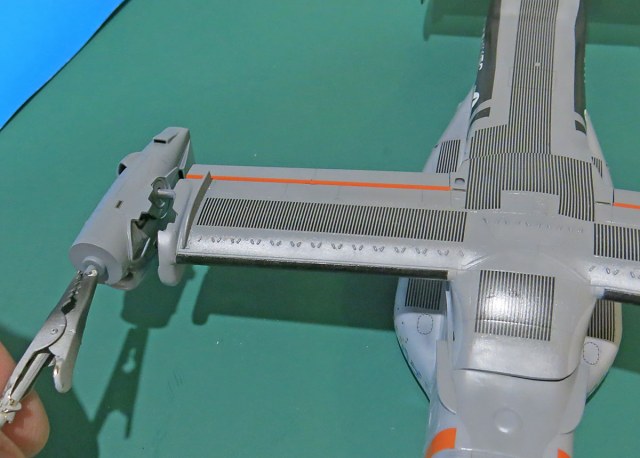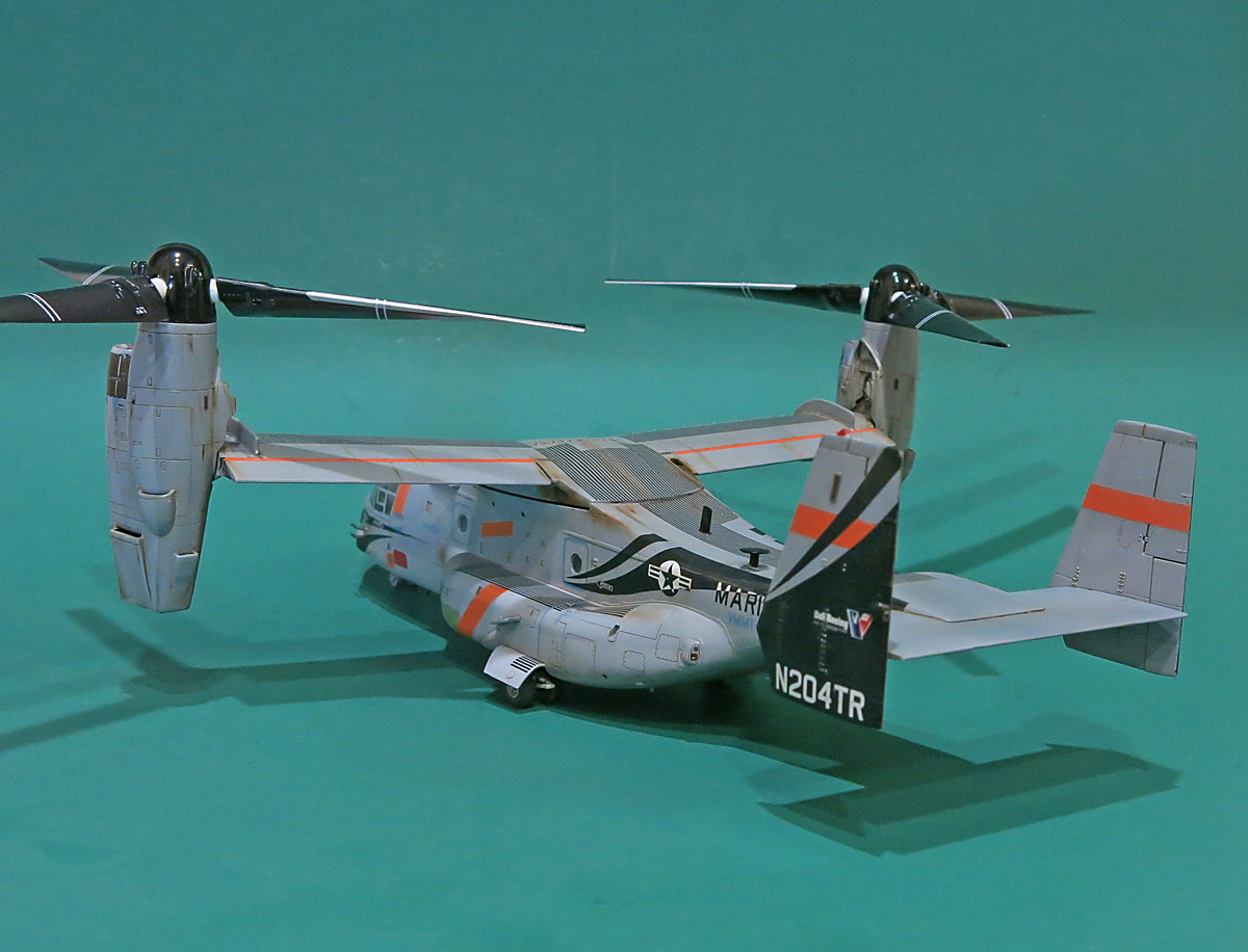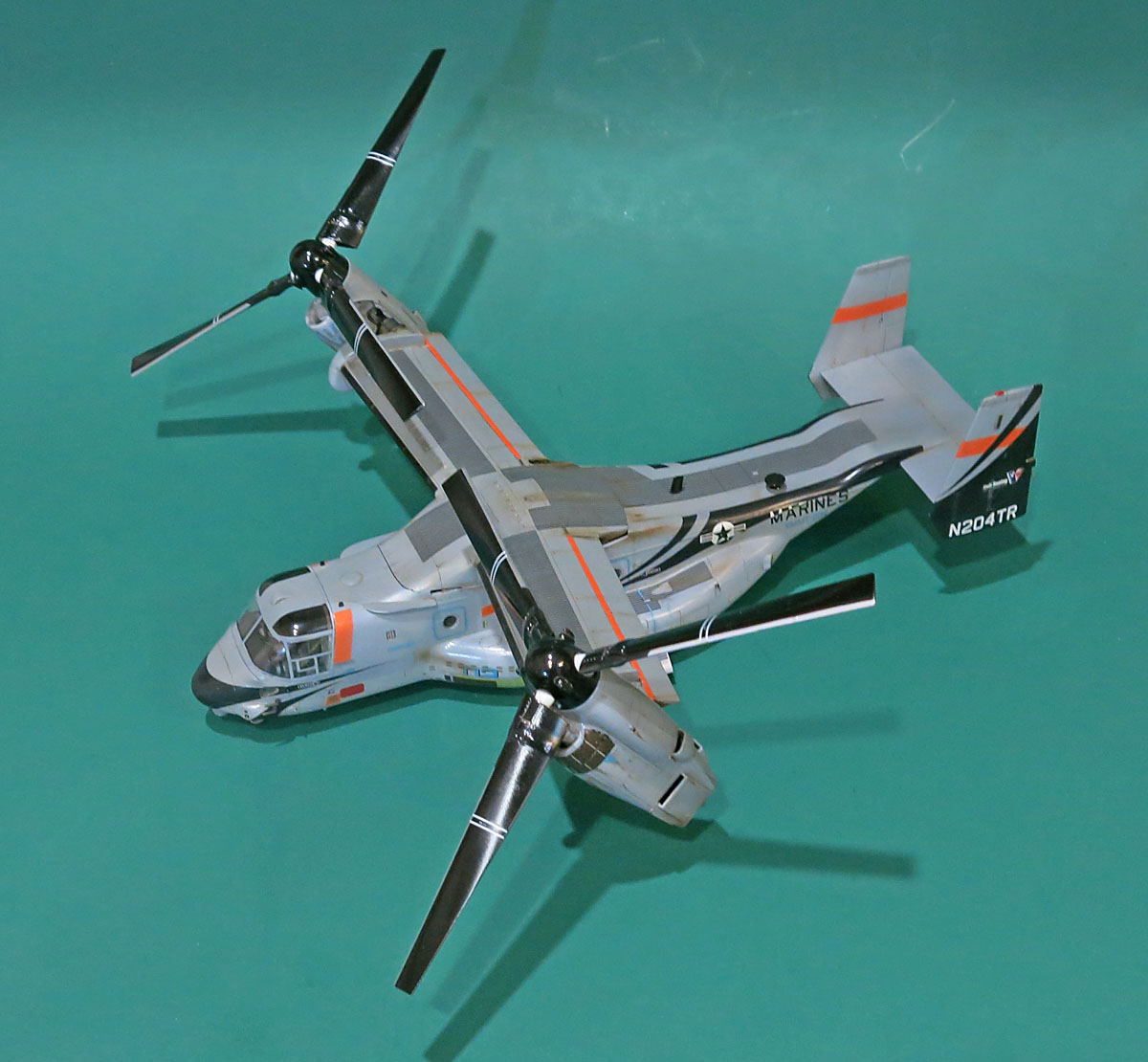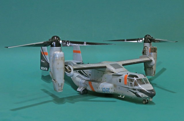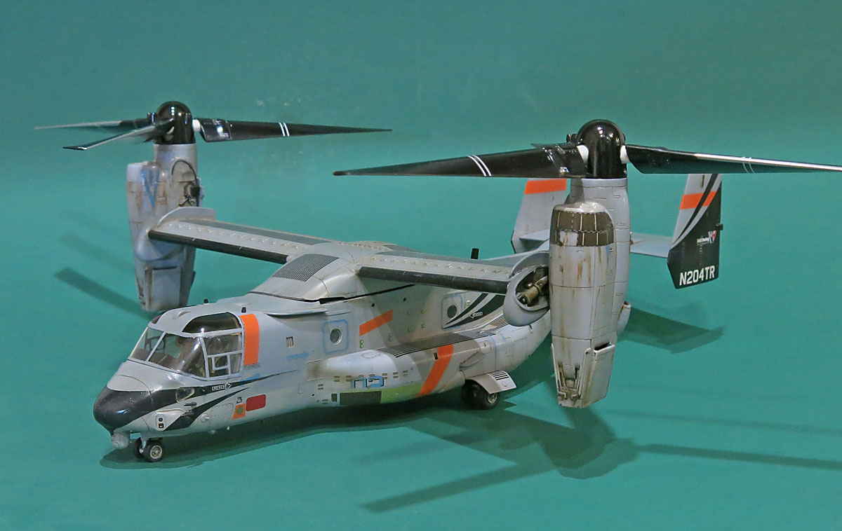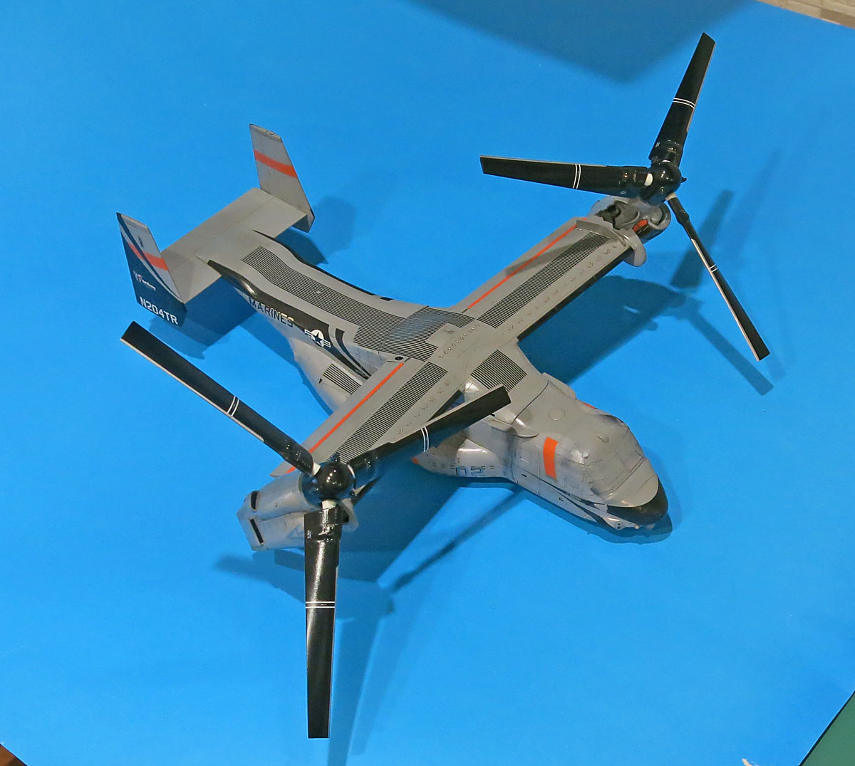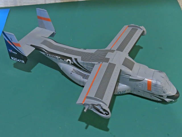 Винты вращаются, мотогондолы поворачиваются от 35-40 градусов (можно и ниже но надо колхозить подставку ибо стоя на шасси в землю упираются, как и на реальном) и до вертикали.