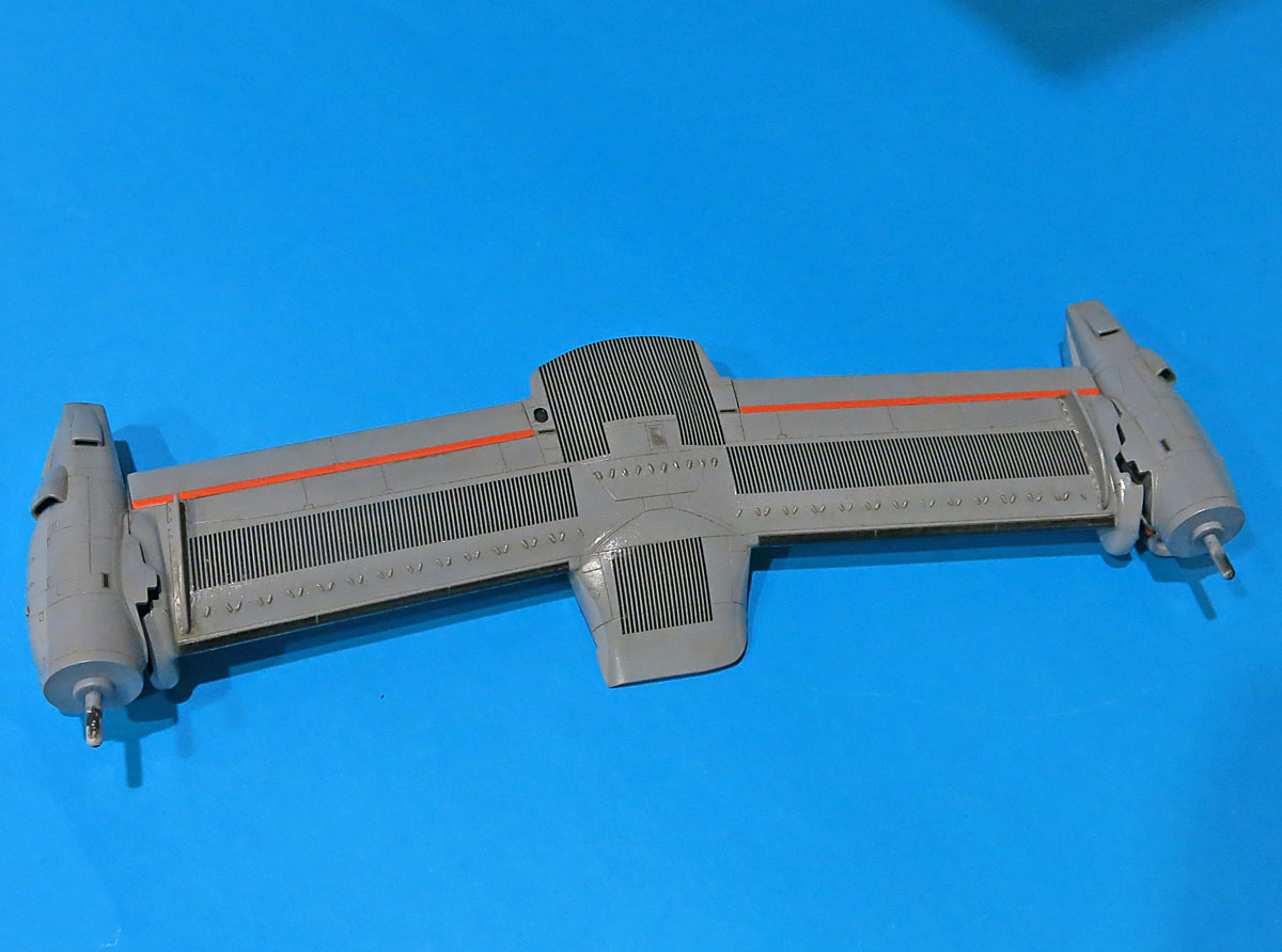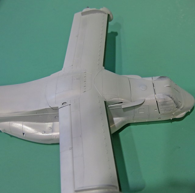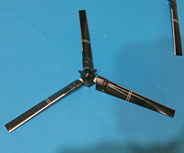 Но если накинуть крыло, мотогондолы и винты (последние не вставлены до конца и левый\правый не следил) - то стоим на трех точках как надо тьфу-тьфу