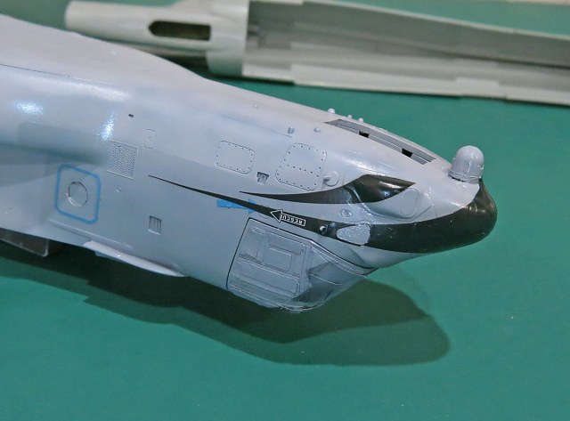 Сложный участок на тушке остался один - полосы заходящие на киль. Это будет задача на вечер