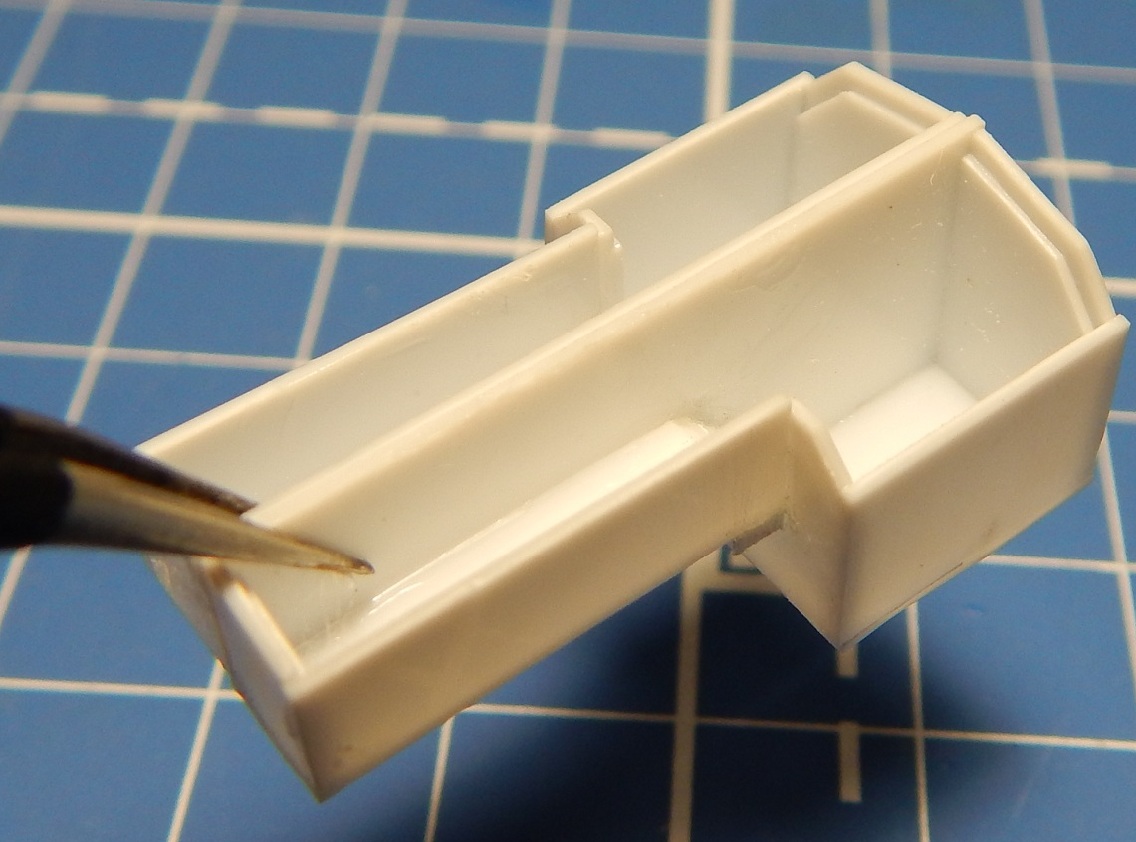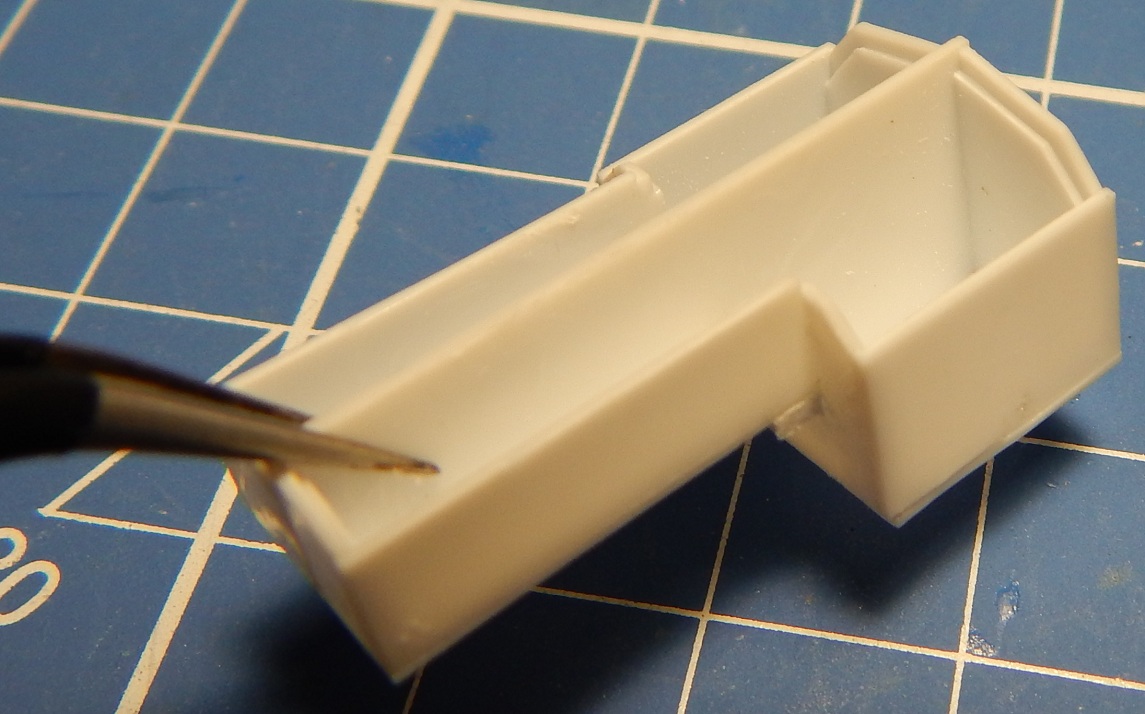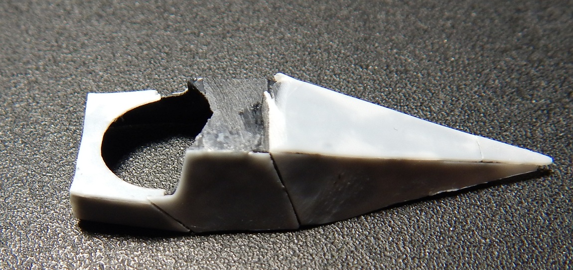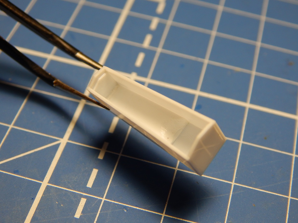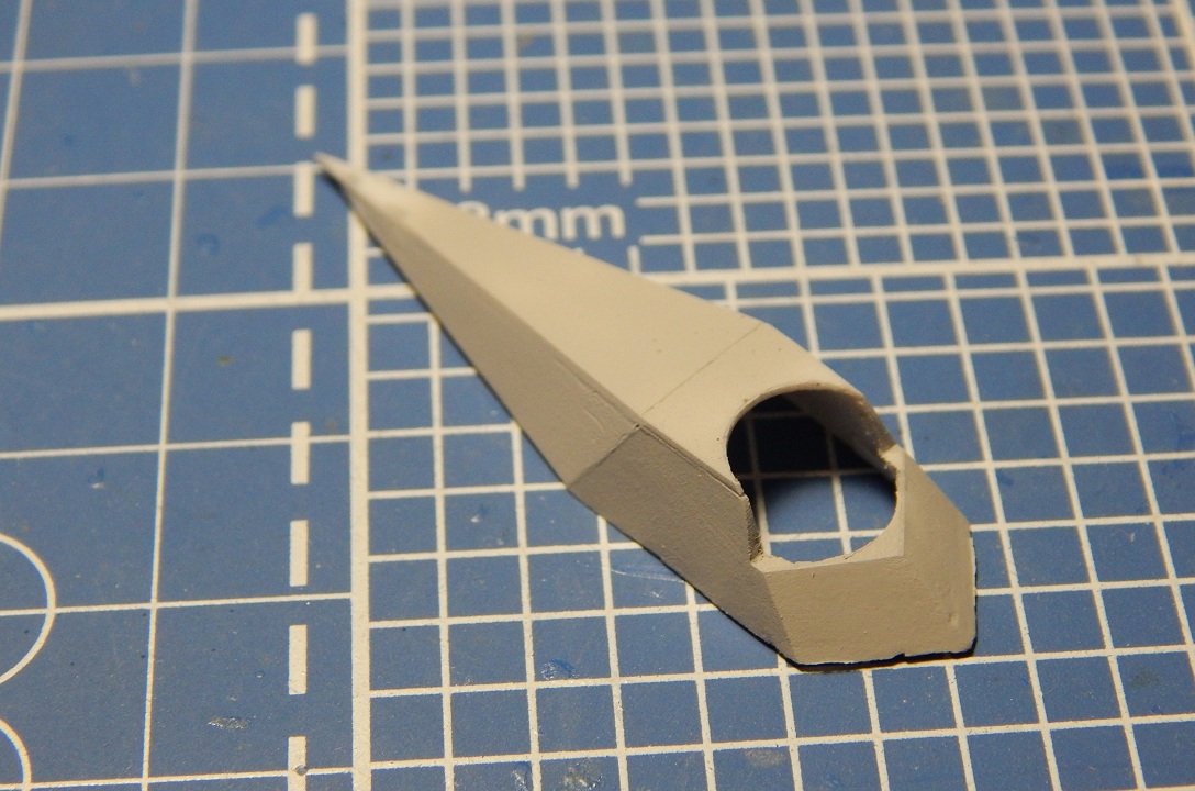 Думал попробовать обточить под острый угол, кромки боковых стенок обтекателя в передней части, что бы они не такими широкими казались на фото, но я так посчитал что если бы в реальности он существовал, то эти стенки в передней части были бы шириной примерно 36мм, а это не так уж и много....