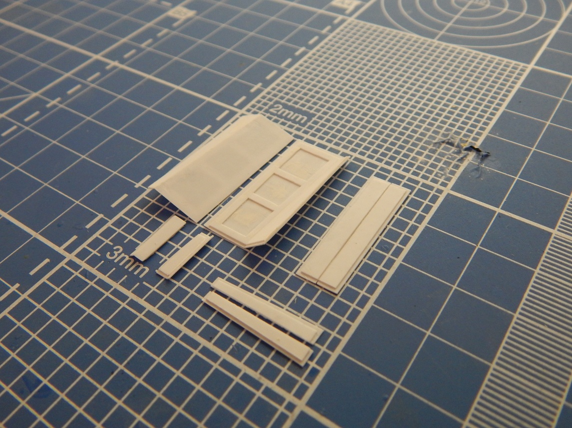 , решил нарастить необходимую толщину фюзеляжа для передних ниш и заодно выровнять поверхность и и сделать её более угловатой - путем изготовления накладок из листового пластика толщиной 0,5мм, мне это толщина показалась самой оптимальной для подобной процедуры, т.к. 0,3мм слишком гибкий, 0,4мм не прозрачный - выпускает только эвергрин и этот пластик в наших интернет магазинах я не нашел в наличии.