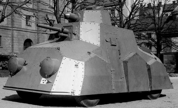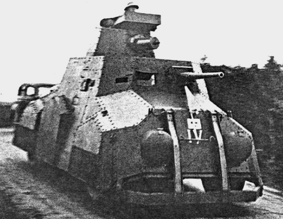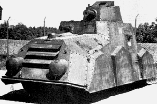 Бронеавтомобиль на шасси грузового автомобиля, мог двигаться вперед и назад со скоростью 60 км/ч по шоссе.