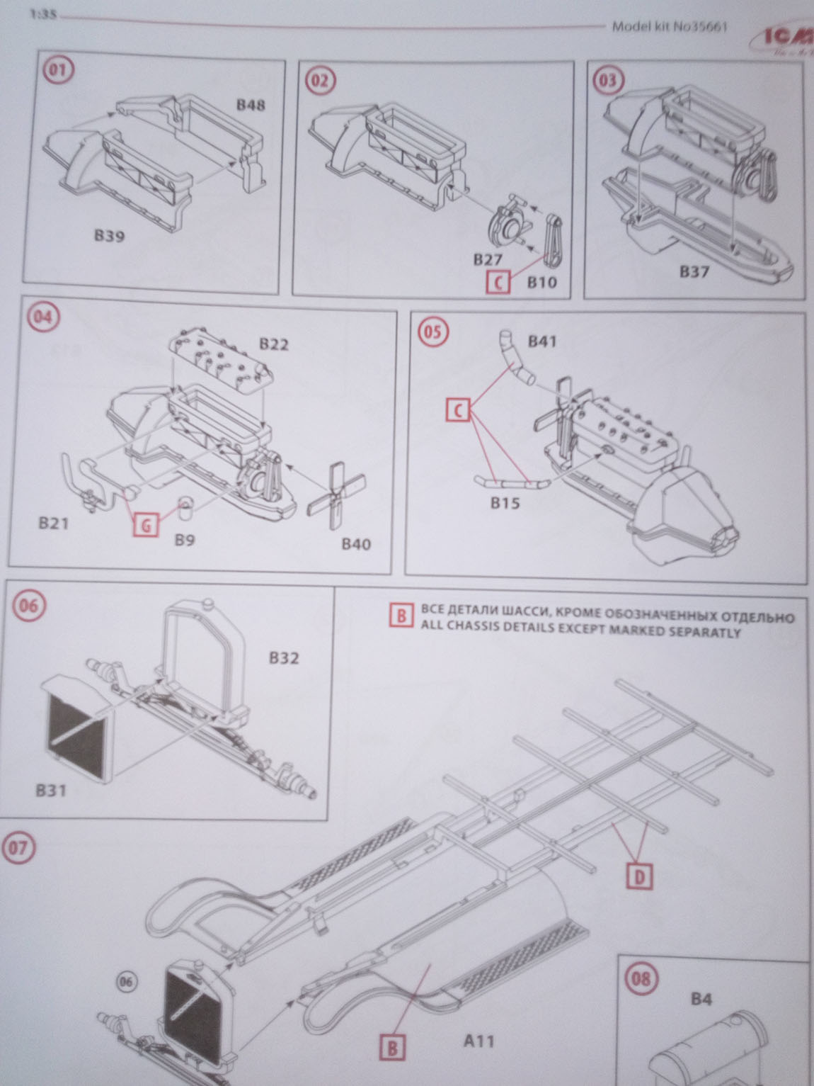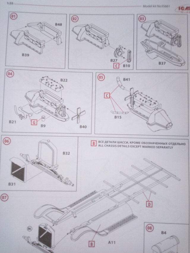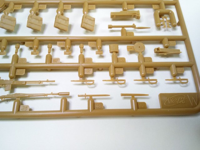 Итак.Качество на высоте. Облоя нет вовсе, на внутренних поверхностях присутствуют следы толкателей, которые легко шпатлюются, при необходимости. На некоторых деталях, в основном фигур, присутствуют литьевые швы..Они удаляются при помощи ножа и надфиля за секунды, не оставляя и следа. В набор входит инструкция, которую я не стал фотографировать досконально, как, собственно и все остальные элементы, они присутствуют на сайте ICM? при желании, можно ознакомиться с ее содержанием.