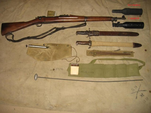 Не нашёл, нигде, винтовки Енфилд P14. А точнее, её американской модификации- P17, которая, в отличии от её британской "сестры", стреляющей патроном british .303 (в метрической системе 7,71мм), была адаптирована всё под тот же .30-06. Эта винтовка производилась в штатах, и была снята с вооружения лишь после ВМВ.