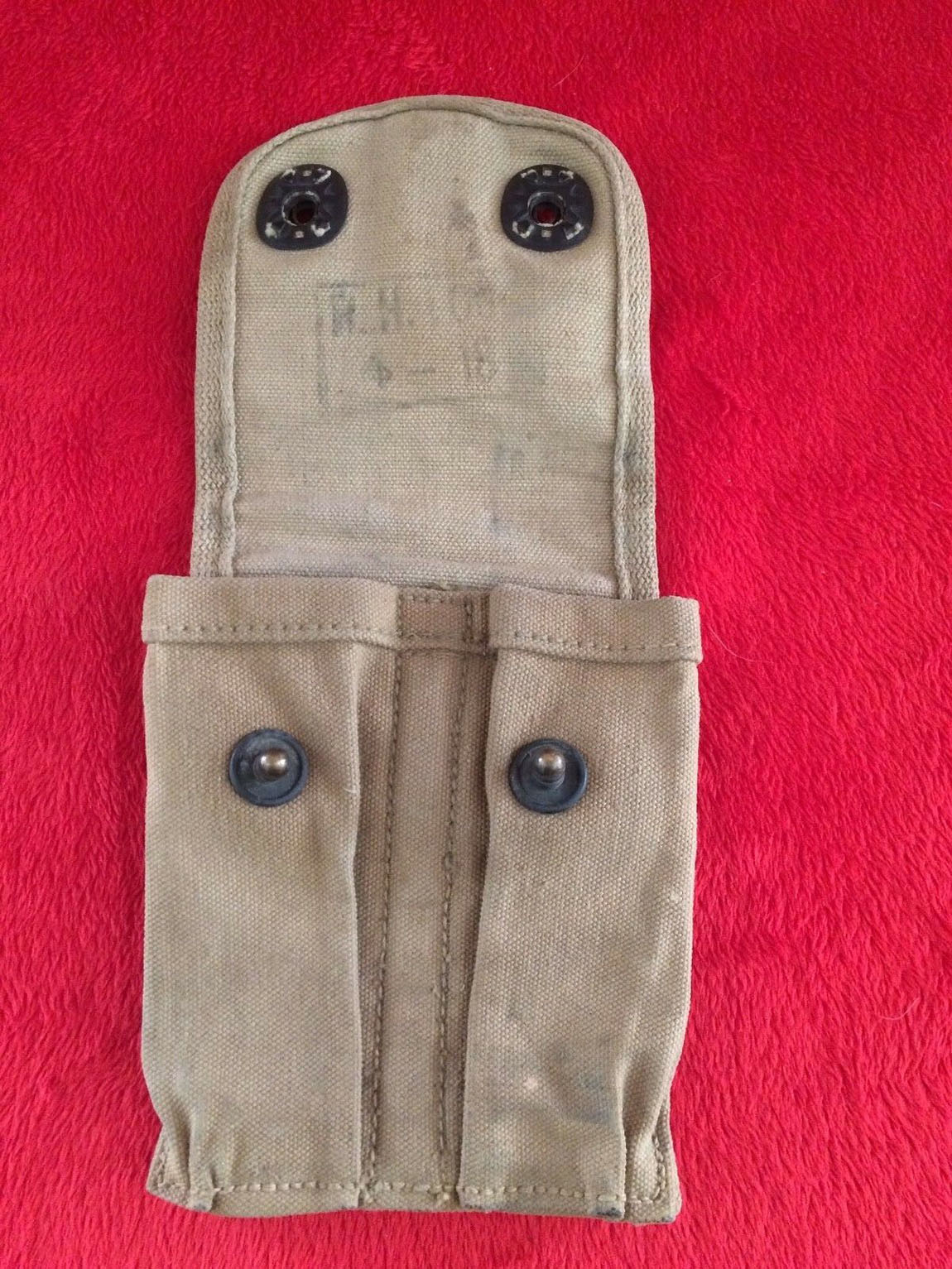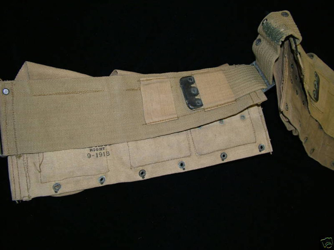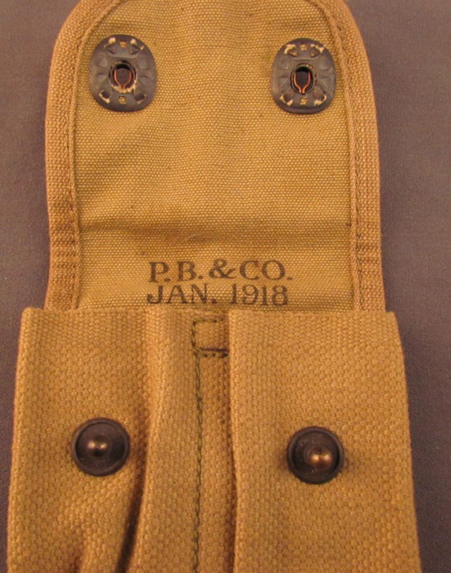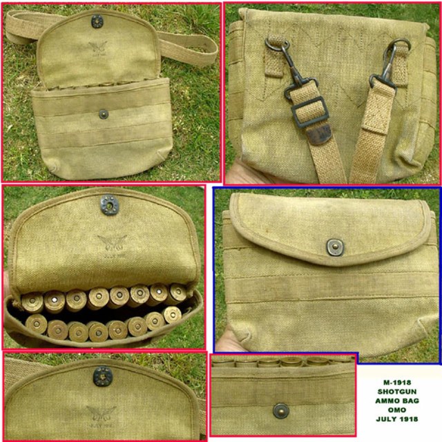 Вообще, эта винтовка была принята на вооружение в самом конце войны. На фронт они попали, буквально в последние месяцы, примерно в сентябре (тогда как война закончилась в ноябре). Существует очень мало фото того времени с этим образцом, в основном рекламные, где сын Джона Мозеса Браунинга - второй лейтенант Вэл браунинг позирует с винтовкой, он официально был откомандирован в войска в качестве инструктора, для обучения новому виду стрелкового оружия. Однако, я нашёл фото подсумков с какого-то американского оружейного форума, где их опубликовал какой-то коллекционер, утверждая, что это действительно подсумок 92-ух летней давности (форум давнешний). И действительно, дата производства на нём 1918-ый год. Просто такие же подсумки были и во 2-ую мировую войну, поэтому были сомнения. Но сейчас, уверенно скажу, что этот элемент экипировки, данный ICM соответствует.