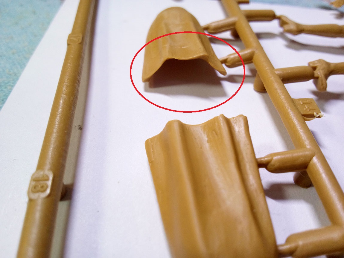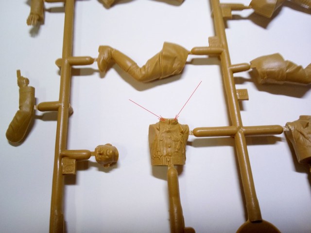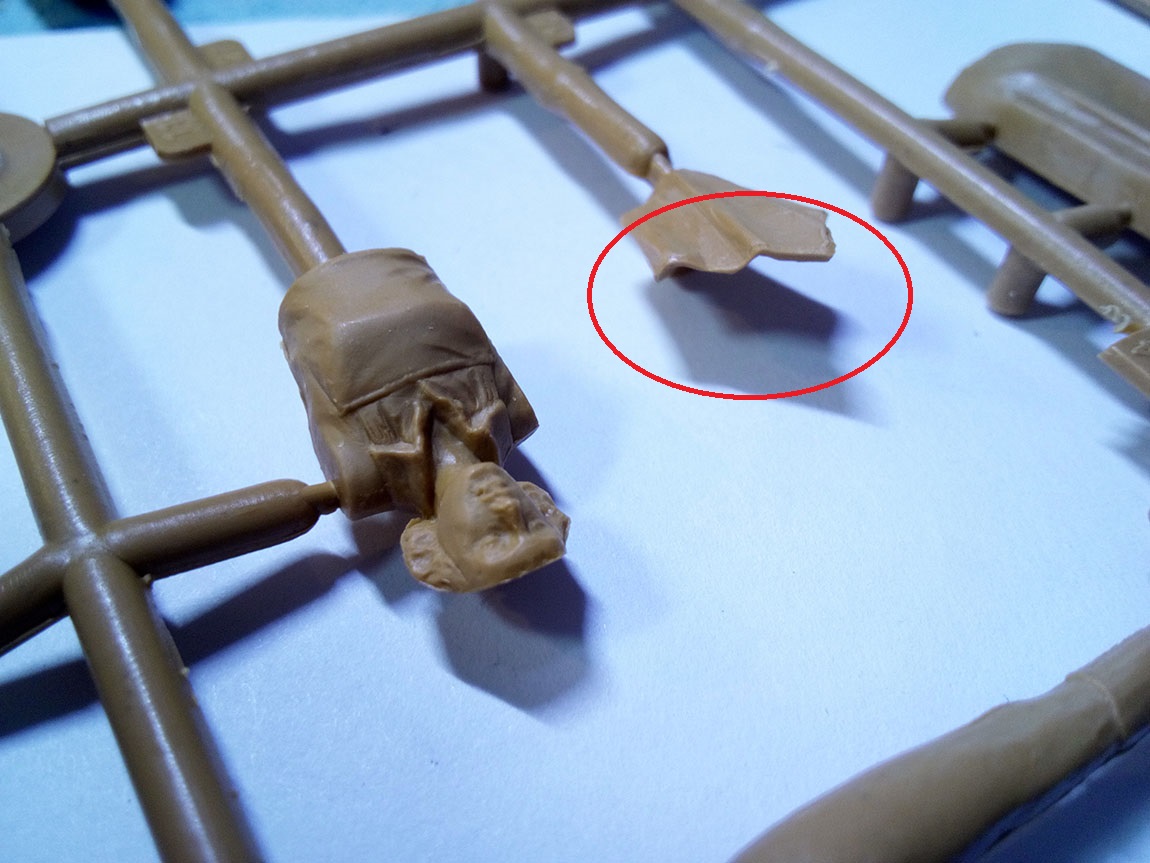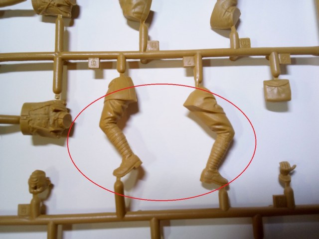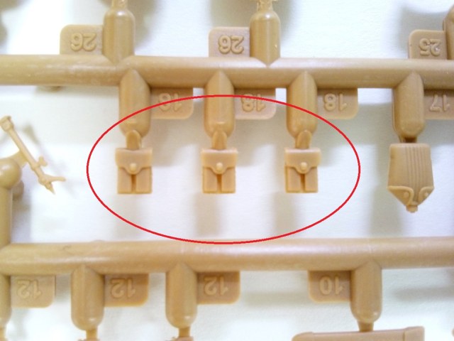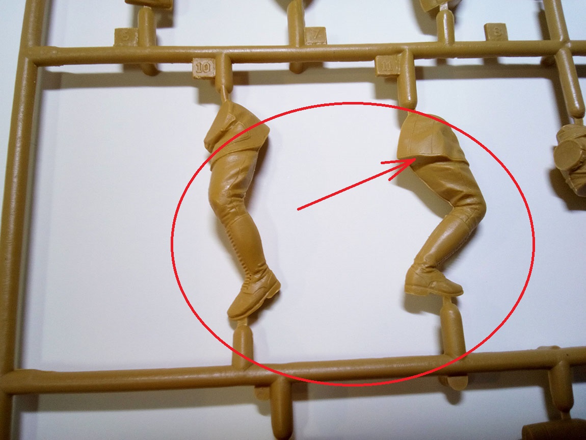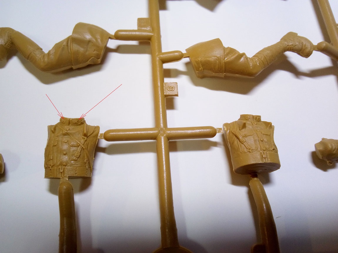 Красными стрелками я указал место в сумке, где желательно немного выбрать пластик, дабы сумка была похожа на сумку с пустотой внутри.Акцентировал внимание на шланге поглощающей коробки, к слову, он имеет гофр, хорошо просматриваемый, не замыленный.Ну и окуляры масок. Проблема в том, что краской трудно будет передать фактуру стекла натурально, поэтому есть задумка высверлить их и залить слегка подтонированым глянцевым лаком, предварительно затемнив высверленную полость. Возвращаясь немного назад, обЪясняю почему ICm-овская унификация, помимо плохо, ещё и хорошо. На третьем литнике 8 голов, однако, на 1-ом, всего 4, по количеству фигур. А поэтому, возможно, купив второй набор, перепилив позы , сделать 8 разных бойчин в газовых масках. Этим самым убивается два зайца за раз, практически.
