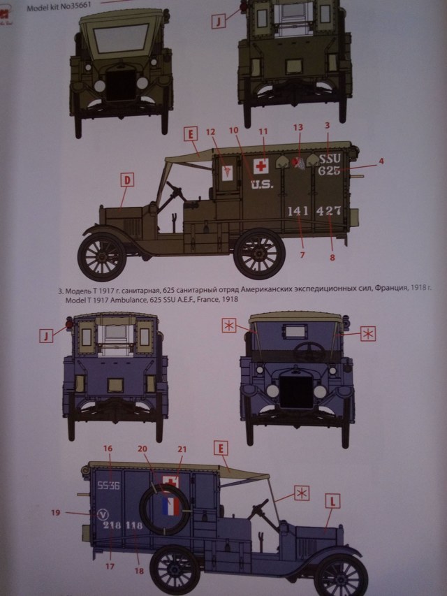По всем машинам, кроме французского варианта, предлагается окраска в зелёно-оливковый цвет. Французов в серо-голубой. В принципе, учитывая количество цветных фотографий, и то, колоризированных, в основном, этих машин, я склонен верить этой схеме, ибо, спустя 100 лет, кто уже сейчас расскажет, какого они цвета были на самом деле?) С этим есть. Далее, декаль