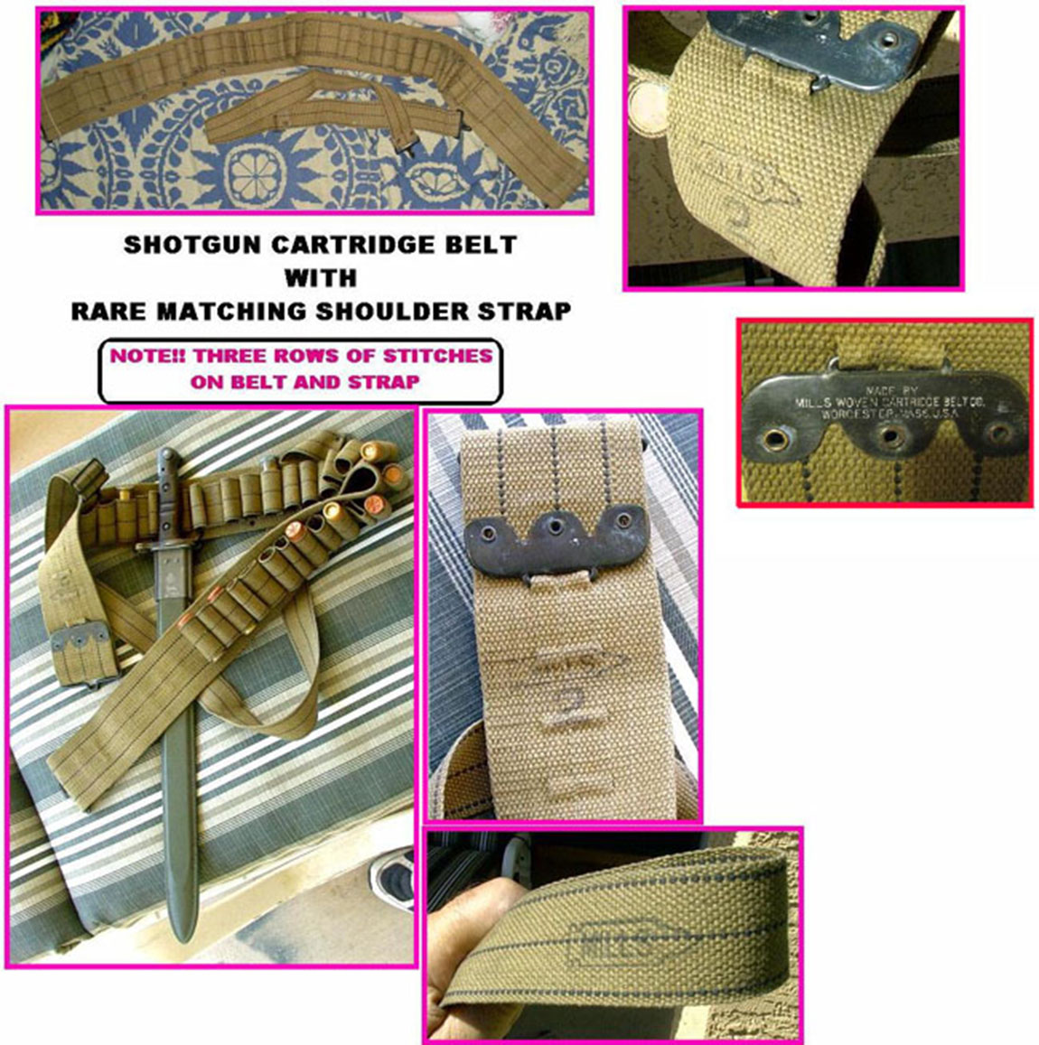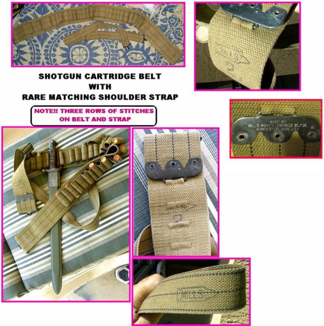 . Но, выяснив этот момент, я пошёл дальше, и узнал ещё кое что. Оказывается, ещё в конце 19-го века, по заказу флота США, некий тов. Миллс ( не путать с другим товарищем, который разработал гранату, то британец был) , разработал пояс для патронов к сигнальному пистолету. За основу он взял патронтаж в ремён индейских войн. имел он вид обычного охотничьего патронтажа, только был изготовлен из брезента а не из кожи. В годы второй мировой войны, имелся пояс для патронов к дробовику, который был дополнен ремнем, перекидываемым через плечо, и к нему, дополнительно крепился штык. Порывшись по бескрайним просторам интернета, американским оружейным сайтам и тематическим форумам, я обнаружил следующее- данный пояс системы Миллса был доработан и запущен на гражданский рынок, и имел пряжку с изображением собаки. Однако, с началом Первой империалистической войны и принятием на вооружение армии США окопных ружей, встала острая необходимость в соответствующей экипировке. Выход был найден- по мимо производства сумки, для военных нужд был адаптирован пояс Миллса. Была убрана пряжка (упрощена), ширина пояса адаптирована под ширину стандартного армейского ремня М1910, дабы имелась возможность крепить на нём штык, и добавлен ремешок через плечо. В дальнейшем, этот пояс дошел и до 2 МВ. Возможно, я изготовлю такой самостоятельно. Больно интересно выглядит).