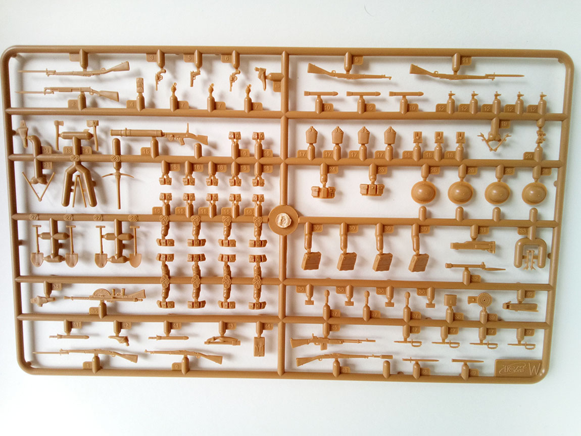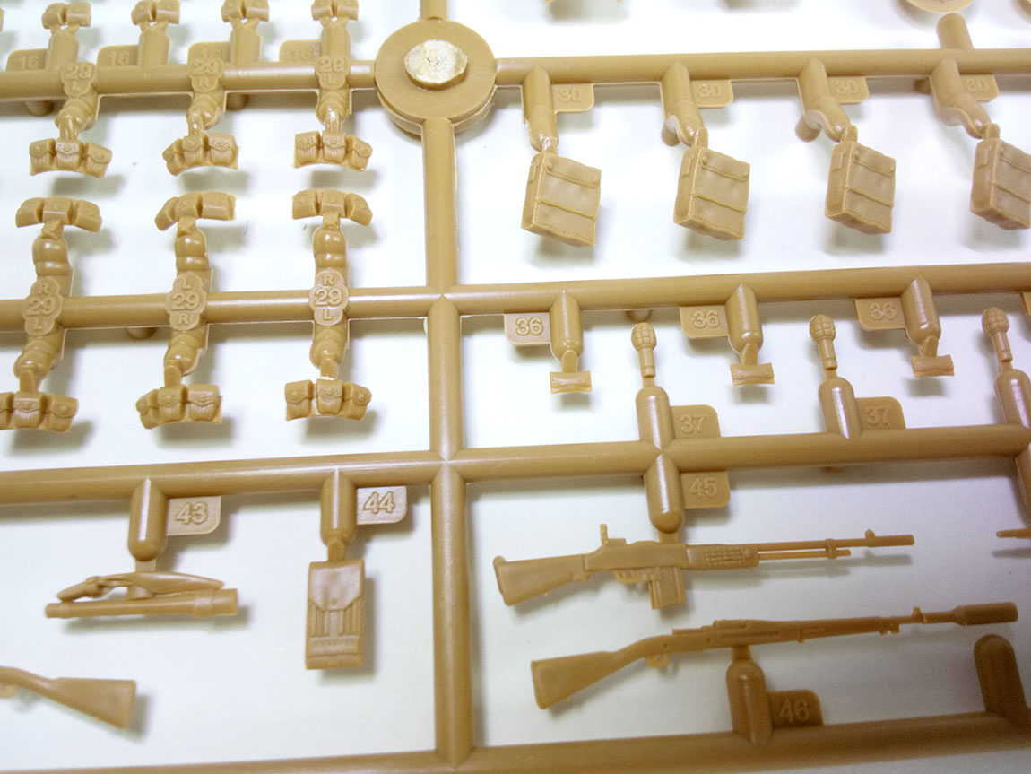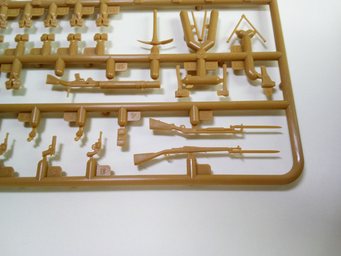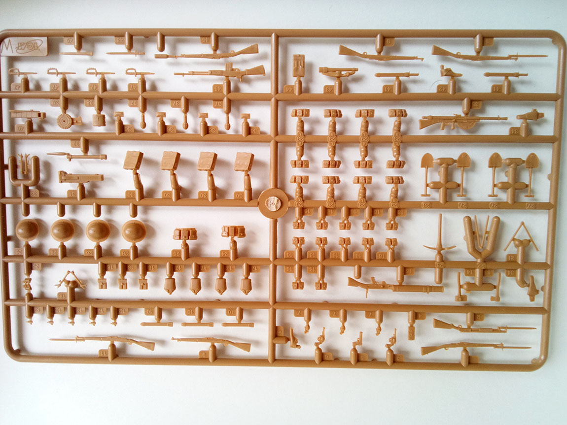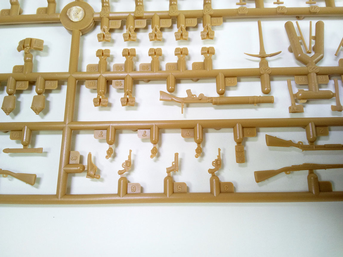 В наборе три литника, первый, с, непосредственно элементами фигур,и частью экипировки.
