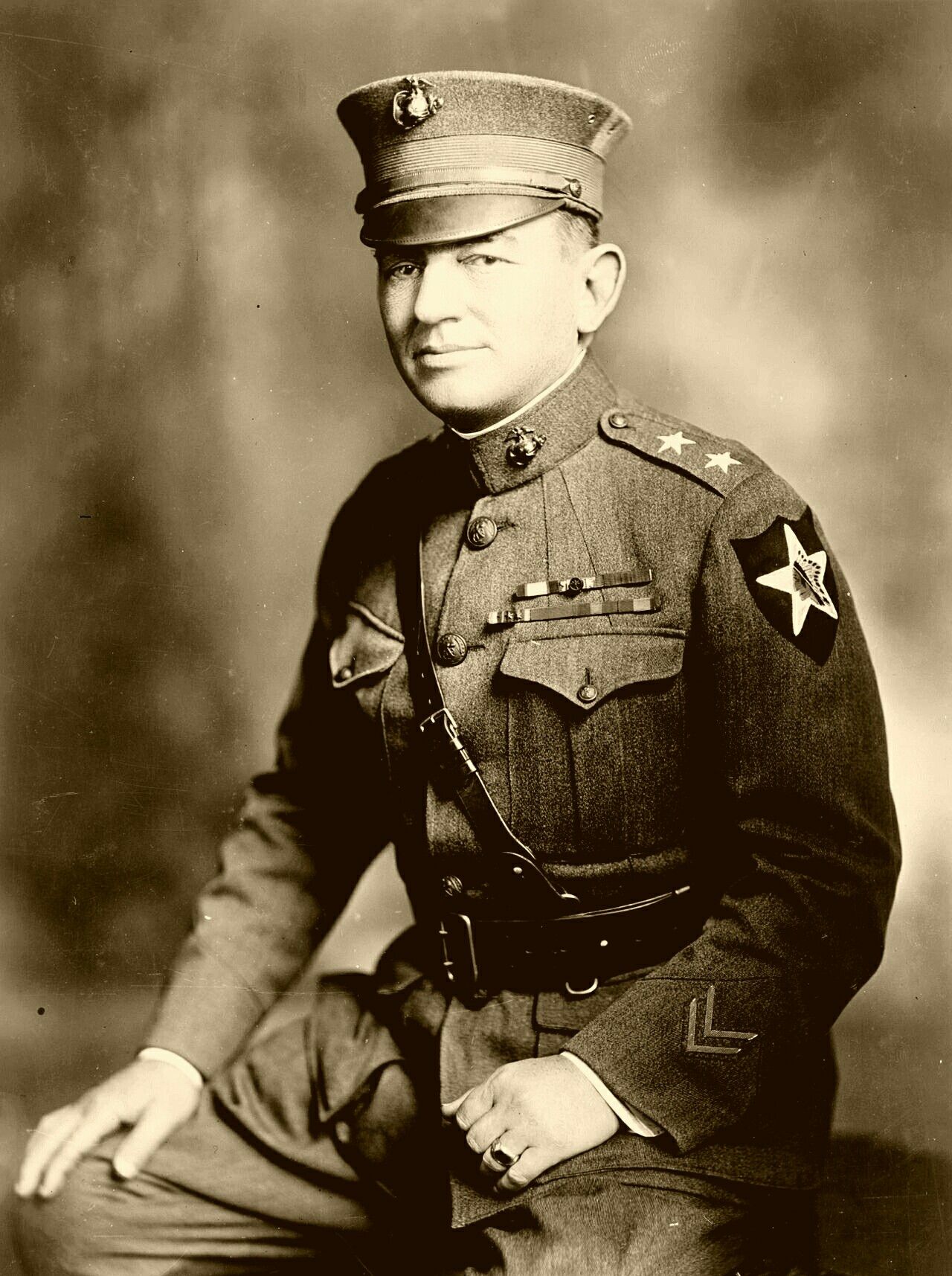 Боевым крещением КМП стала битва при Белло-Вуд(английское название). Местный лес потом переименовали в "лес морской бригады". Сами американцы, эту войну не очень любят вспоминать. Оно и понятно. В вышеупомянутой битве, к концу первого дня не досчитались свыше 1000 убитыми солдат и офицеров, это, считай, два батальона в полном составе, отправились на тот свет. ранеными почти 7000 человек. То есть, из двух полков (5-го и 6-го) к концу дня, боеспособным остался лишь один. Сомнительная победа, в конце войны то. Вот, кстати, статейка на эту тему, много неточностей, но, может представлять определённый интерес. http://alternathistory.com/kreshchenie-ognem-amerikanskaya-morskaya-pekhota-v-pervoi-mirovoi-voine/ И ещё один нюанс- 5 полк морской пехоты был придан, позже, 2-ой пехотной дивизии армии США, чьей эмблемой являлась индейская голова.