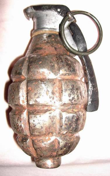 Ну и крайняя граната- Mk I. Информации по ней крайне мало, известно только лишь, что она была принята на вооружение в 1917-году. Прослужила не долго и была заменена в на модернизированный в 1918 году вариант Mk II (Pineapple- ананас). Известно, также, что она имела 5(!) степеней взведения, и часто солдаты тупили, и бросали невзведённой в противника..обратно уже прилетала взведённой.)))) Просто, глядя на неё, мне кажется, что та история похожа на байку. Обычная граната, кольцо, рычаг.. Может её просто надо было кинуть точно также, как кидает бейсбольный мяч питчер в бейсболе ?) Не понятно.. тем не менее.