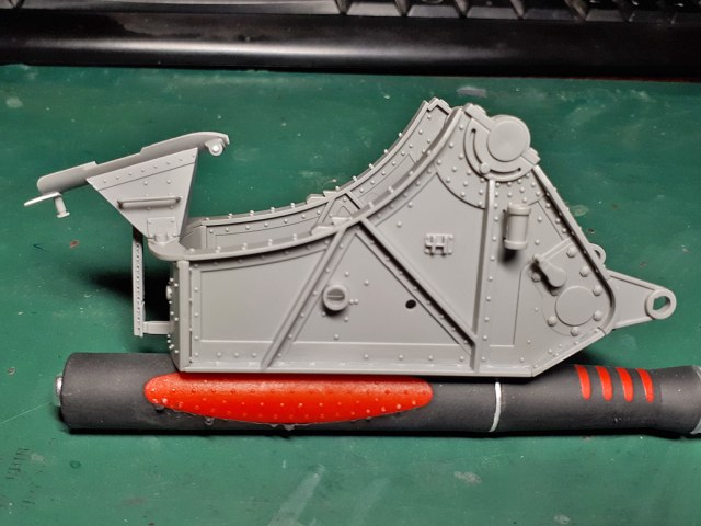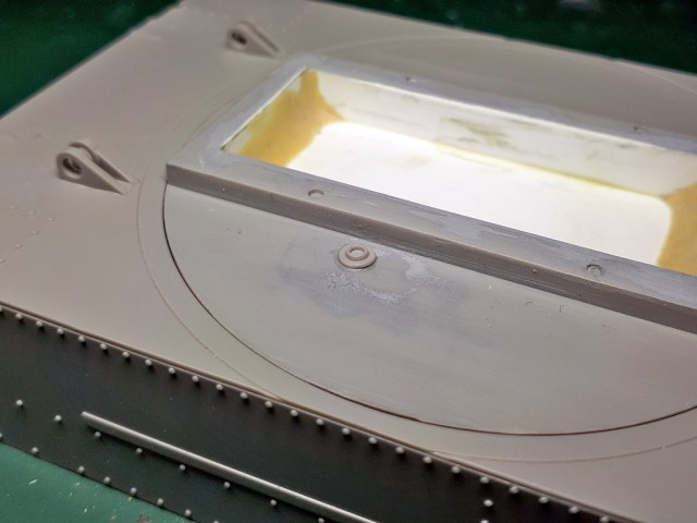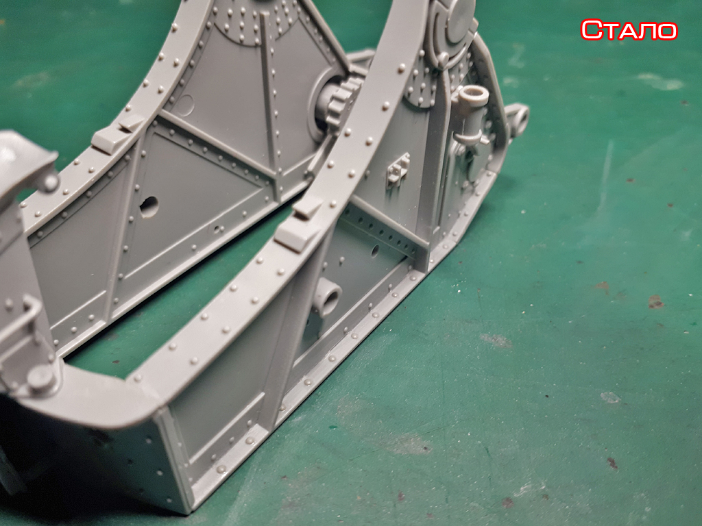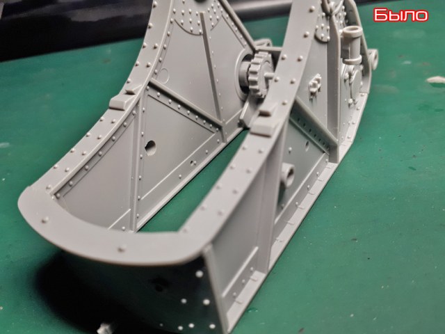 Ну, и чтобы уж точно не отвертеться от переделки, сточил те самые "палочки" имитирующие заклепки на нижнем ободе лафета. Сами заклепки приедут на следующей неделе. И это, пожалуй, будет последняя доработка, которую останется сделать.