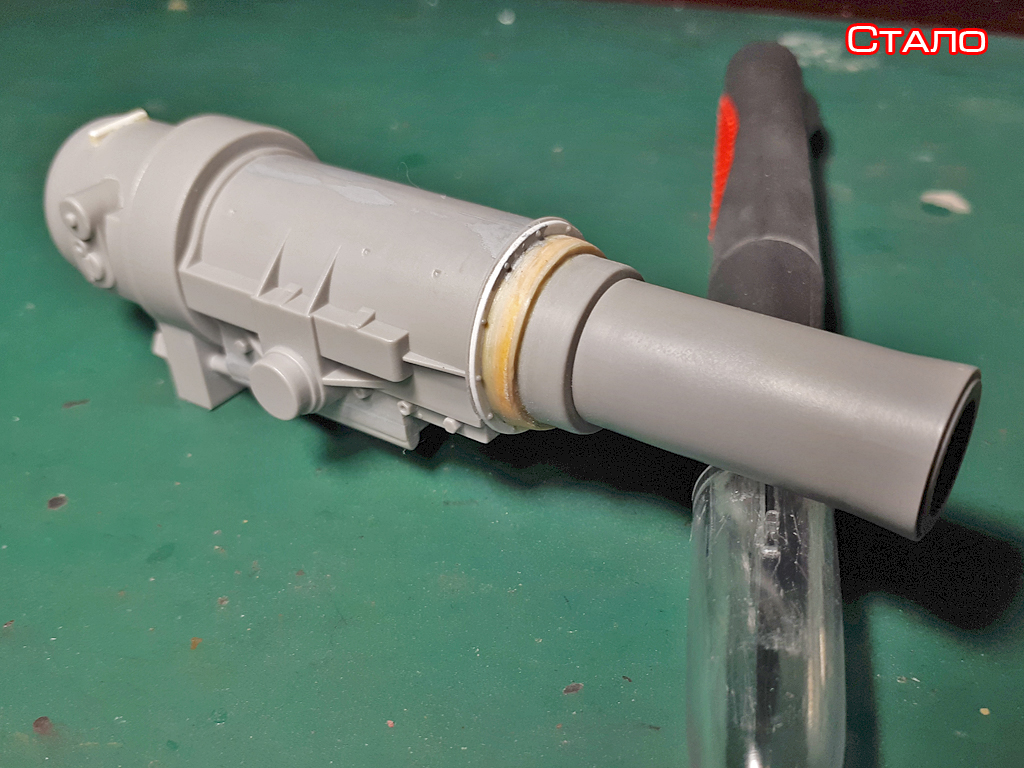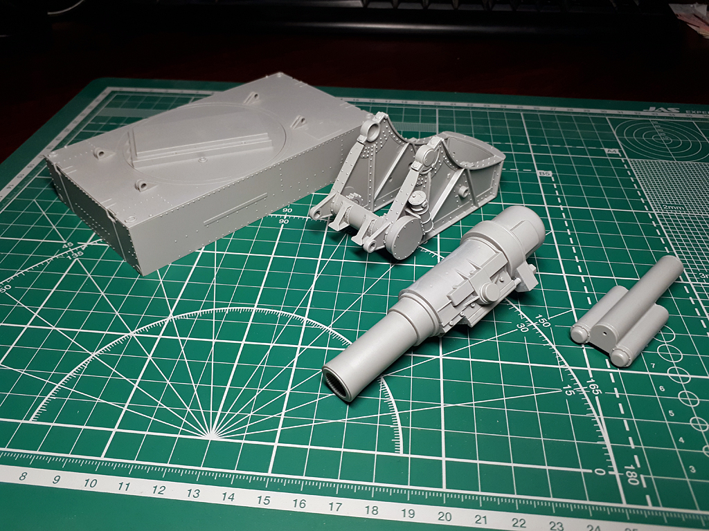 1. Из ранее собранных и доработанных узлов полностью собрал под окраску ствол и люльку:
