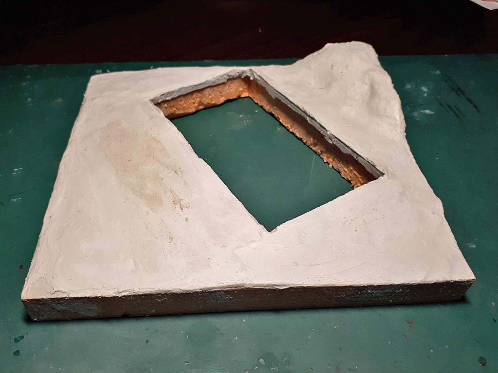Ну, и параллельно корплю над основанием-подставкой. Композицию (см. пост #11) решил оставить почти без изменений. Вместо одного из островков травы сделаю отвал грунта из котлована под платформу орудия.